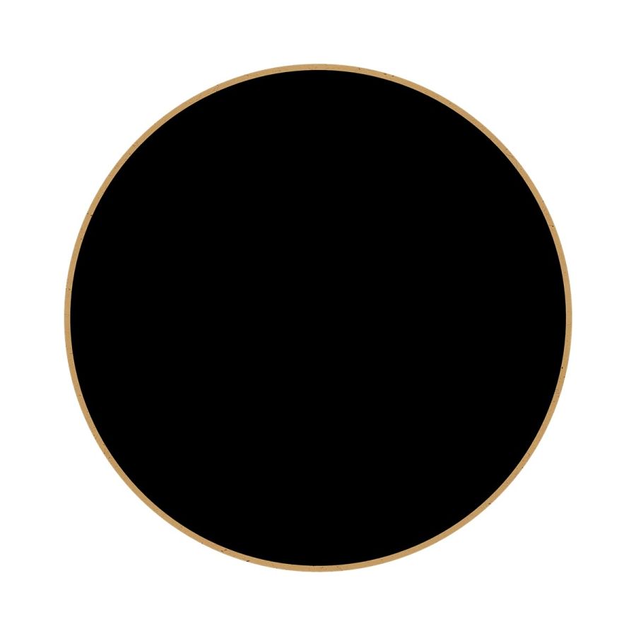 A stylish and sleek tripod side table with spindle legs and a circular table top frame in forged iron, enclosing a round black glass top.