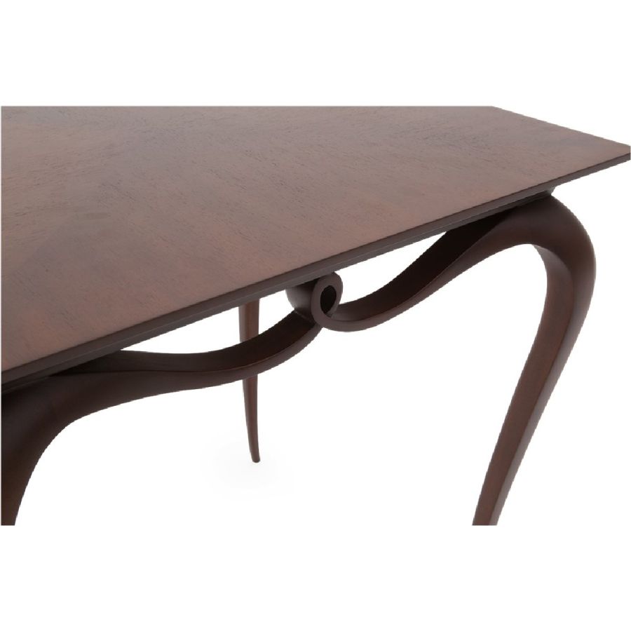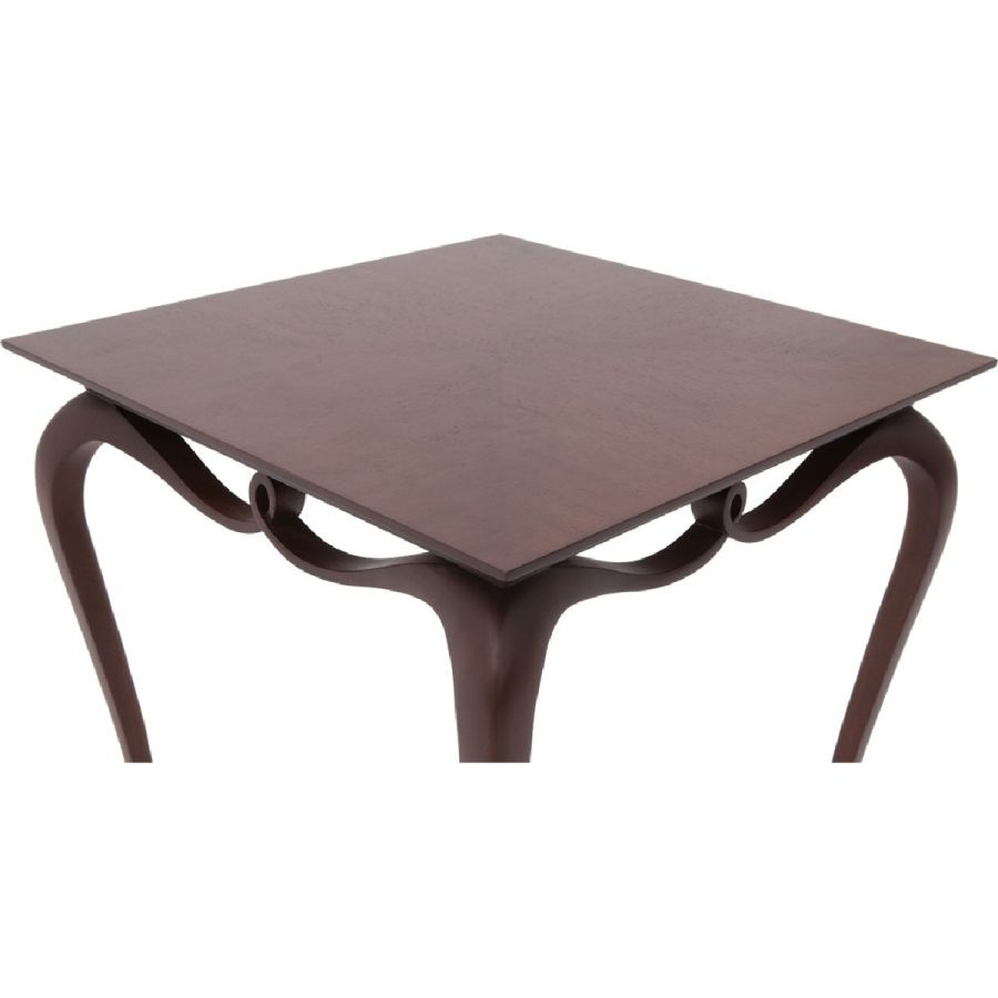 A contemporary styled Christopher Guy signature end table crafted from mahogany with an ampersand form, seamlessly connecting the legs in a delightful decorative flourish.