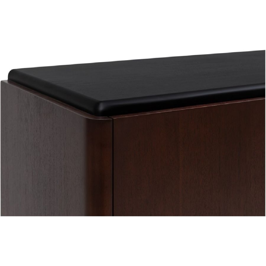 Solid Mahogany and engineered wood construction. Multiple ultra-suede lined drawers with easy glide. Front-door opening. Selection of remarkable finishes are available. For residential use only. Commercial use is classified as Special Order Design (SOD), and alternative materials may be required. Contact us for details.