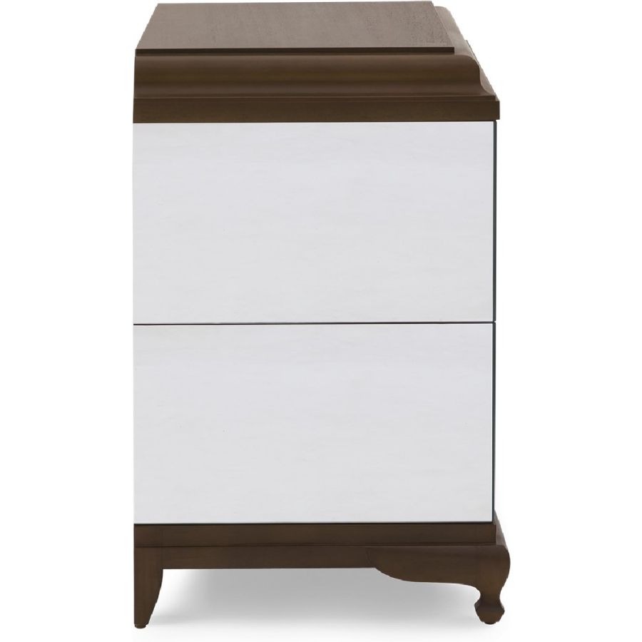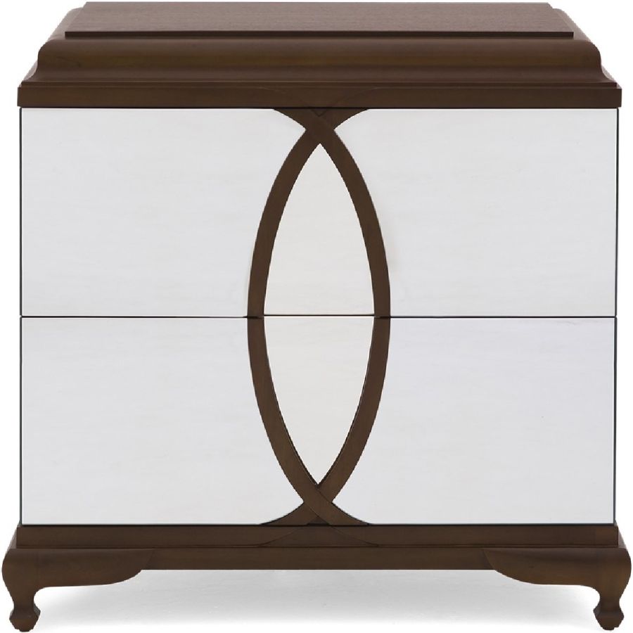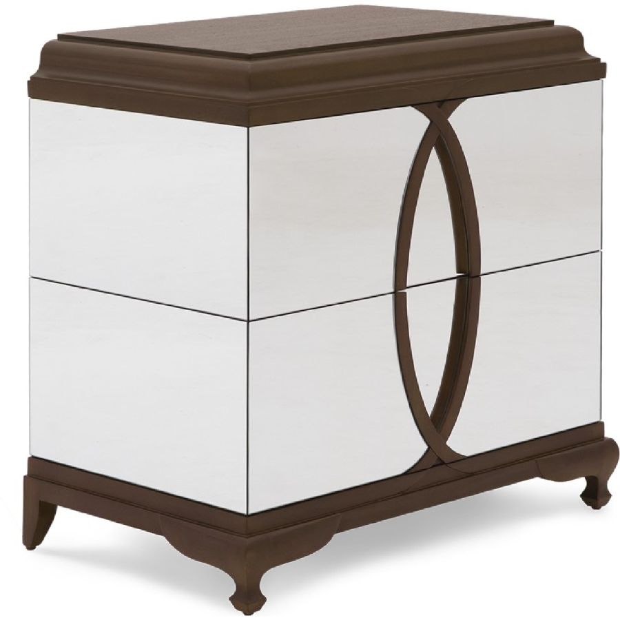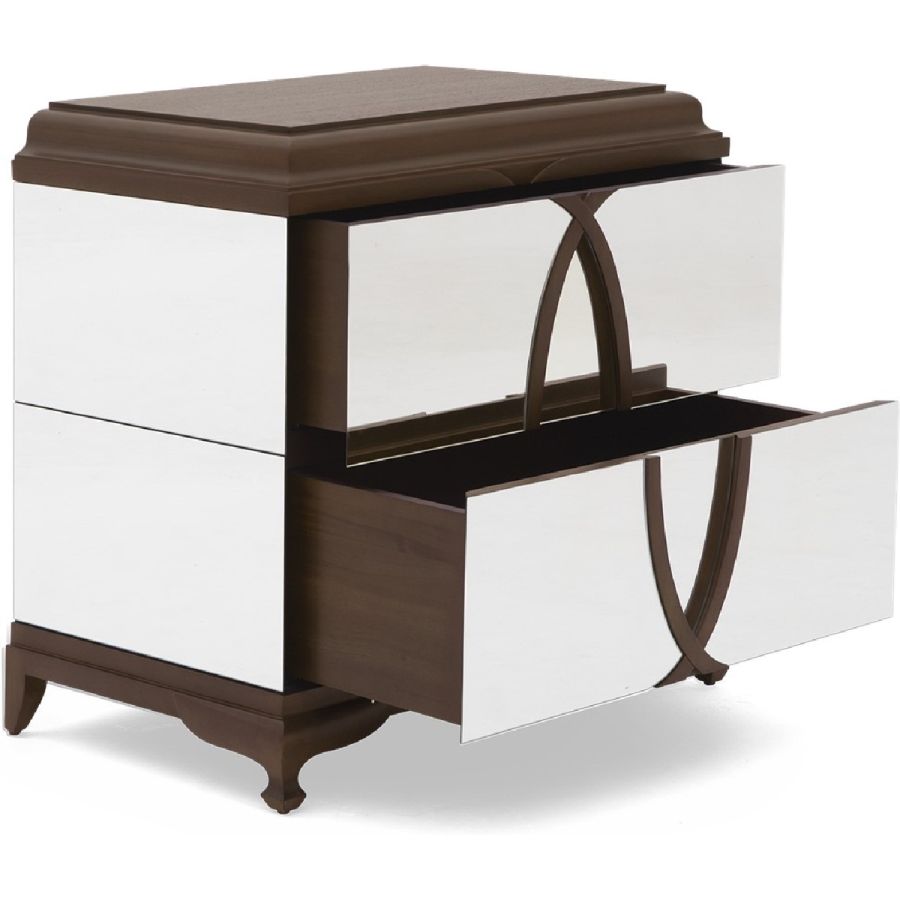 A beautifully carved stepped apron, petite cabriole legs and oval design offer this nightstand, which features two deep drawers, an object of extraordinary elegance.