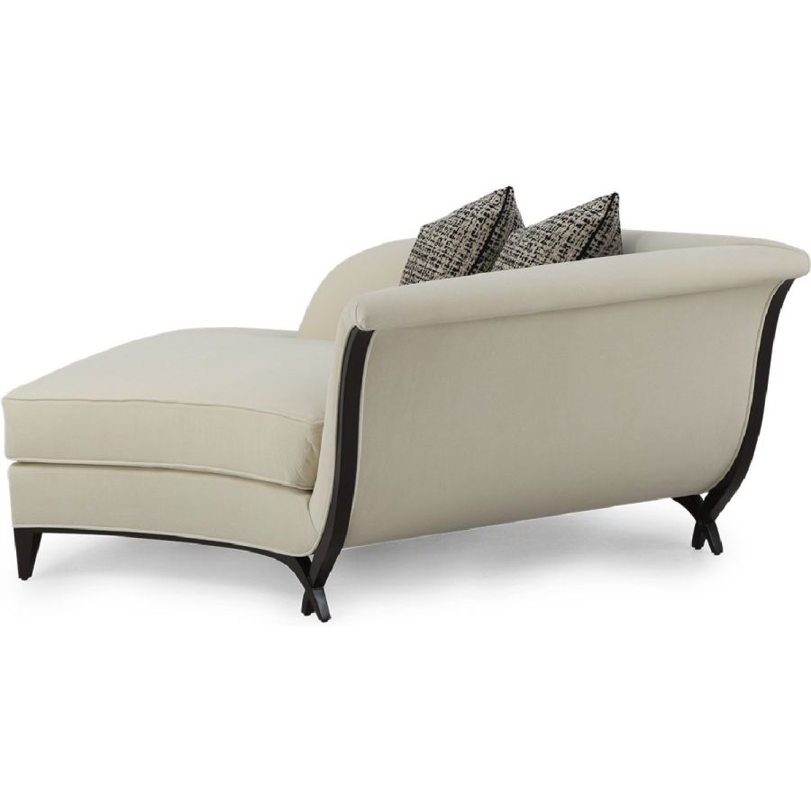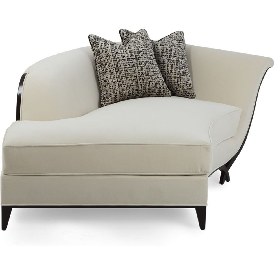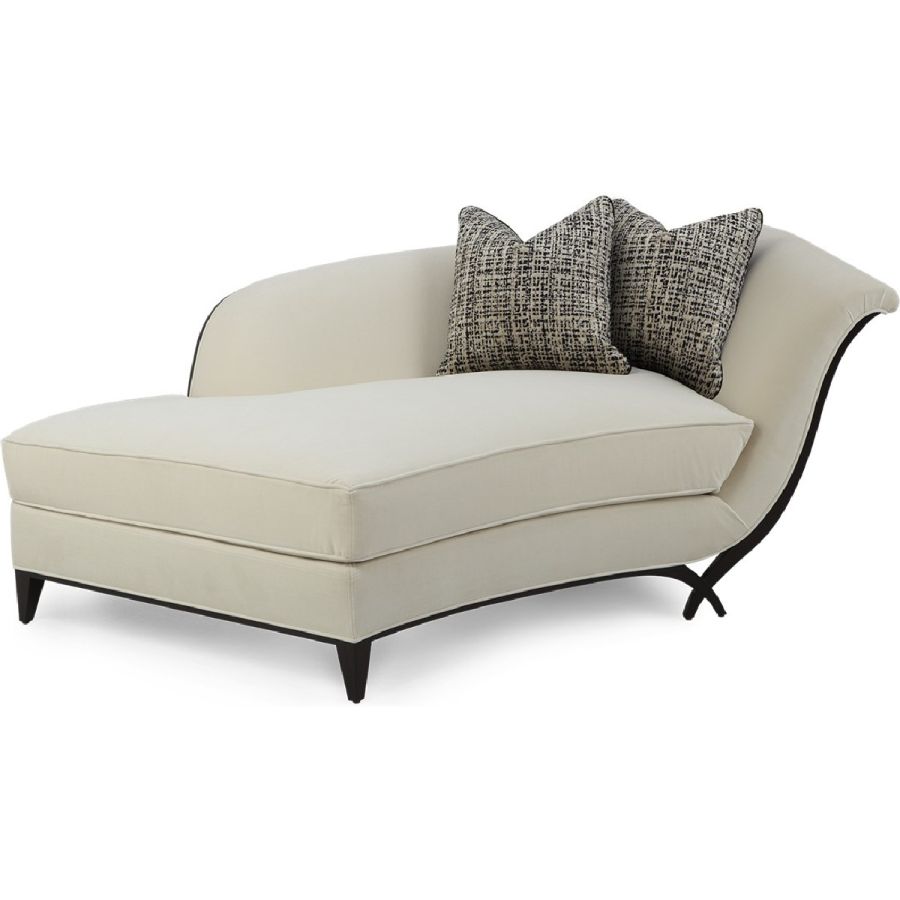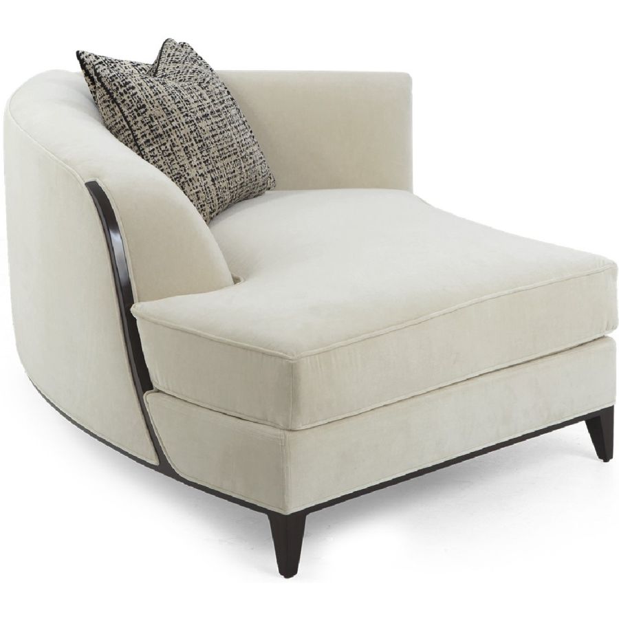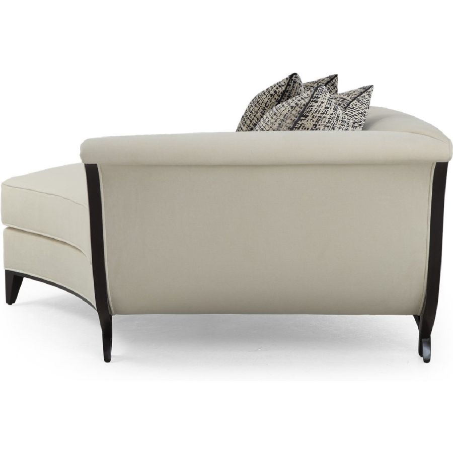 In an unusual sweeping trapezium shape, this is a stunning chaise that combines beauty with comfort. A gently curving back is complemented by a hand-carved frame and the signature Chris-cross legs. Also available in a left hand version (60-0577).