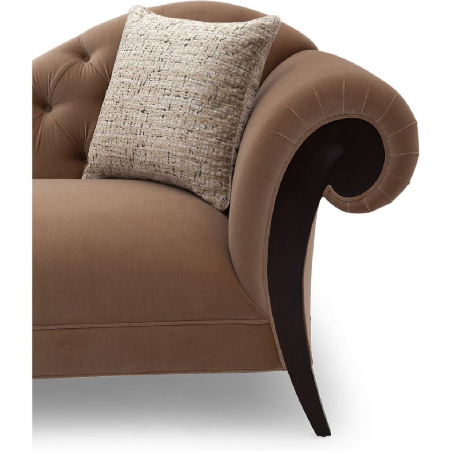 Gentle sweeping curves along with a punctuated accent mark as an arm decoration exemplify Christopher Guy's ability to turn inspired imagery into a reality of luxurious living.