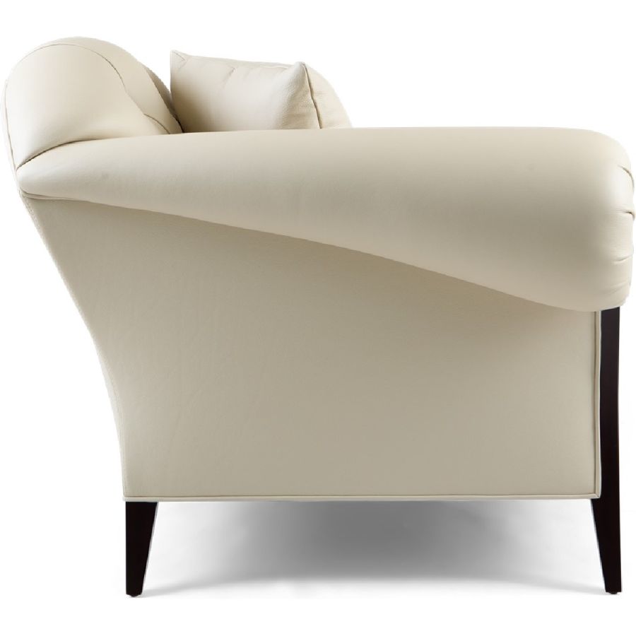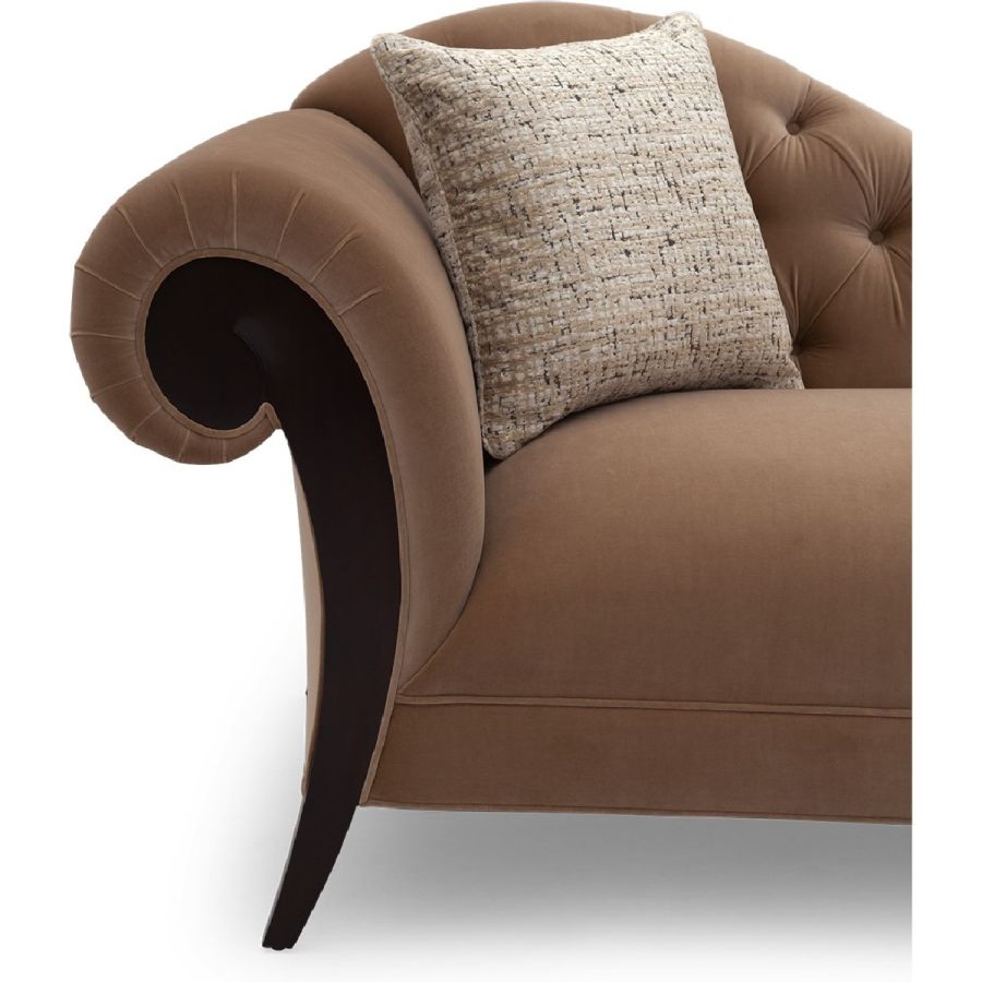 Gentle sweeping curves along with a punctuated accent mark as an arm decoration exemplify Christopher Guy's ability to turn inspired imagery into a reality of luxurious living.