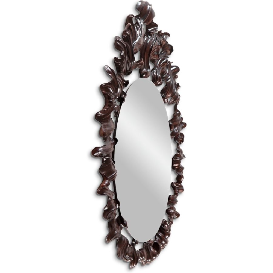 A beautifully crafted asymmetrical mirror frame displaying the diverse skills of the CG artisans in the unusual organic form, which forms a delicate garland around the oval pane.