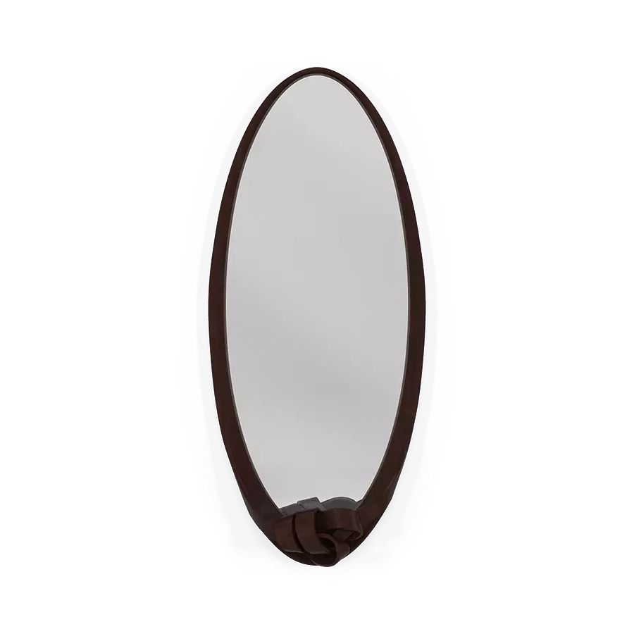 Intricately hand-carved from fine mahogany, this oval mirror frame stands as a testament to exceptional craftsmanship and outstanding quality. Featuring a sculptural knot accent at its base, it beautifully symbolizes unity and harmony.