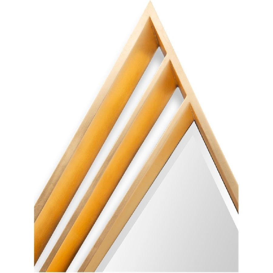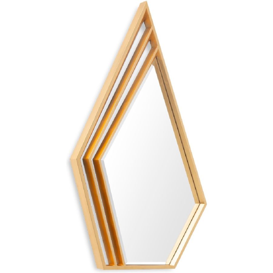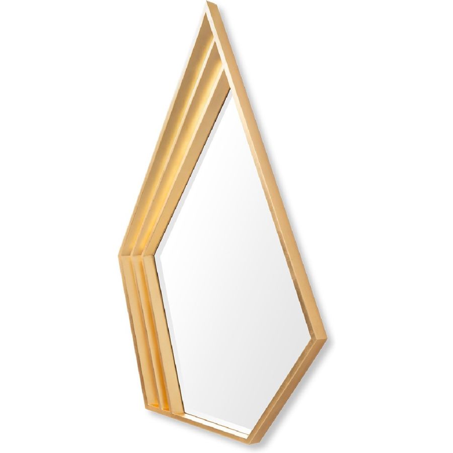Playing with refraction and reflection, this striking hand crafted contemporary style mirror is crafted as an irregular five-sided gem shape, with the right hand sides repeated twice to create a visual representation of an echo. Also available in a left side version (50-3183).