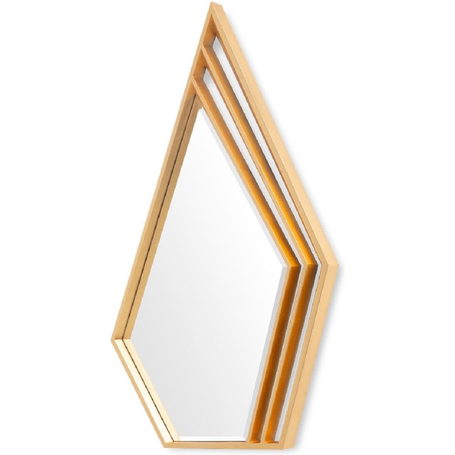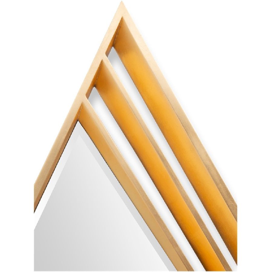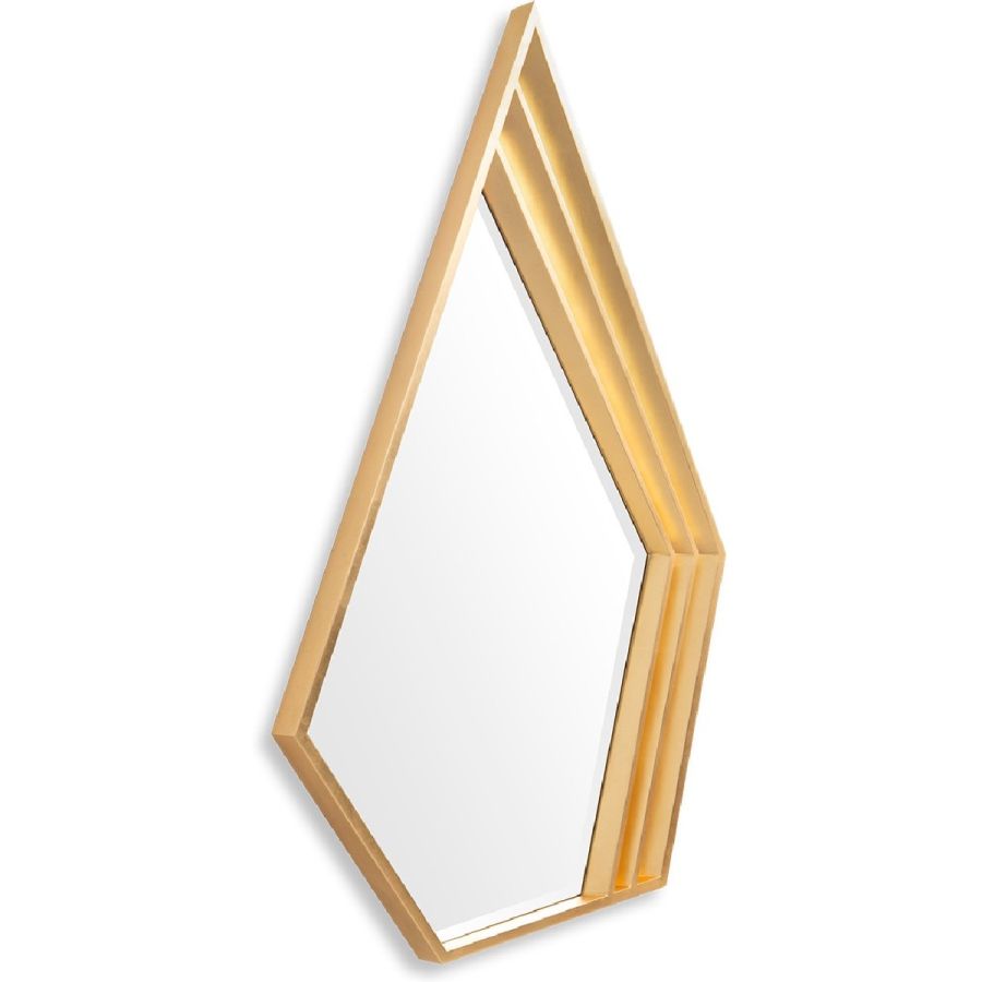 Playing with refraction and reflection, this striking hand crafted contemporary style mirror is crafted as an irregular five-sided gem shape, with the right hand sides repeated twice to create a visual representation of an echo. Also available in a left side version (50-3184).