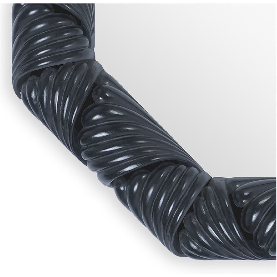 Expertly carved from wood to appear to be made of rattan wrapped around an octagonal frame, this mirror is an exceptionally intricate and painstakingly made masterpiece of craftsmanship, created to grace and enhance any style of setting.