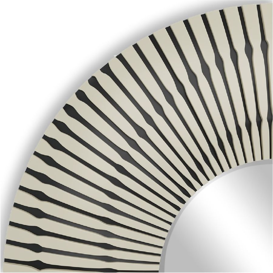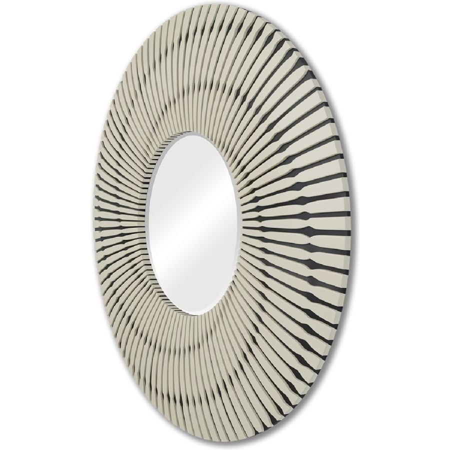 A mesmerising mirror, with the circular hand carved wood band carved into grooves to give the appearance of spinning round the central pane. Truly amazing!