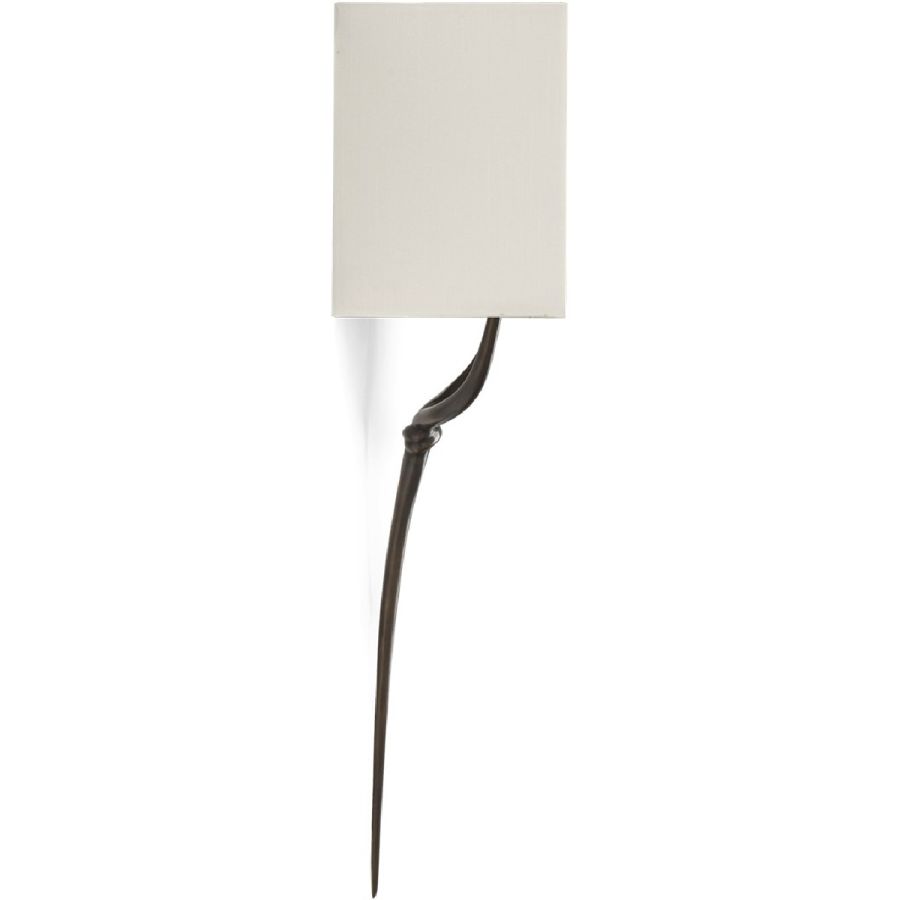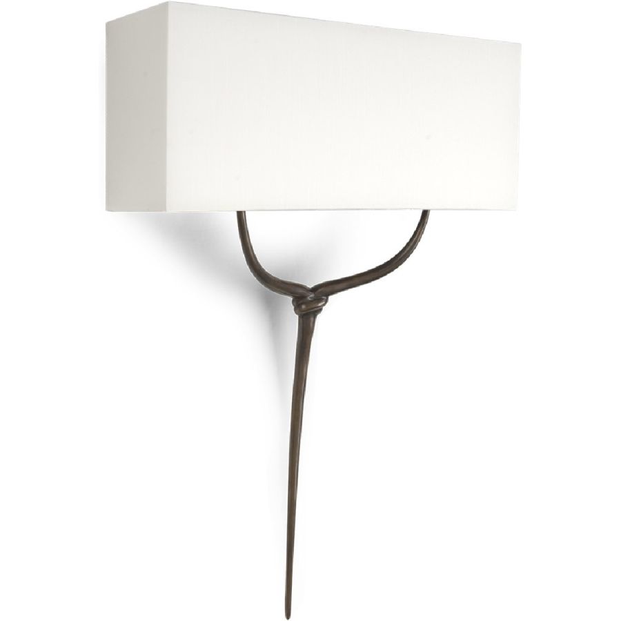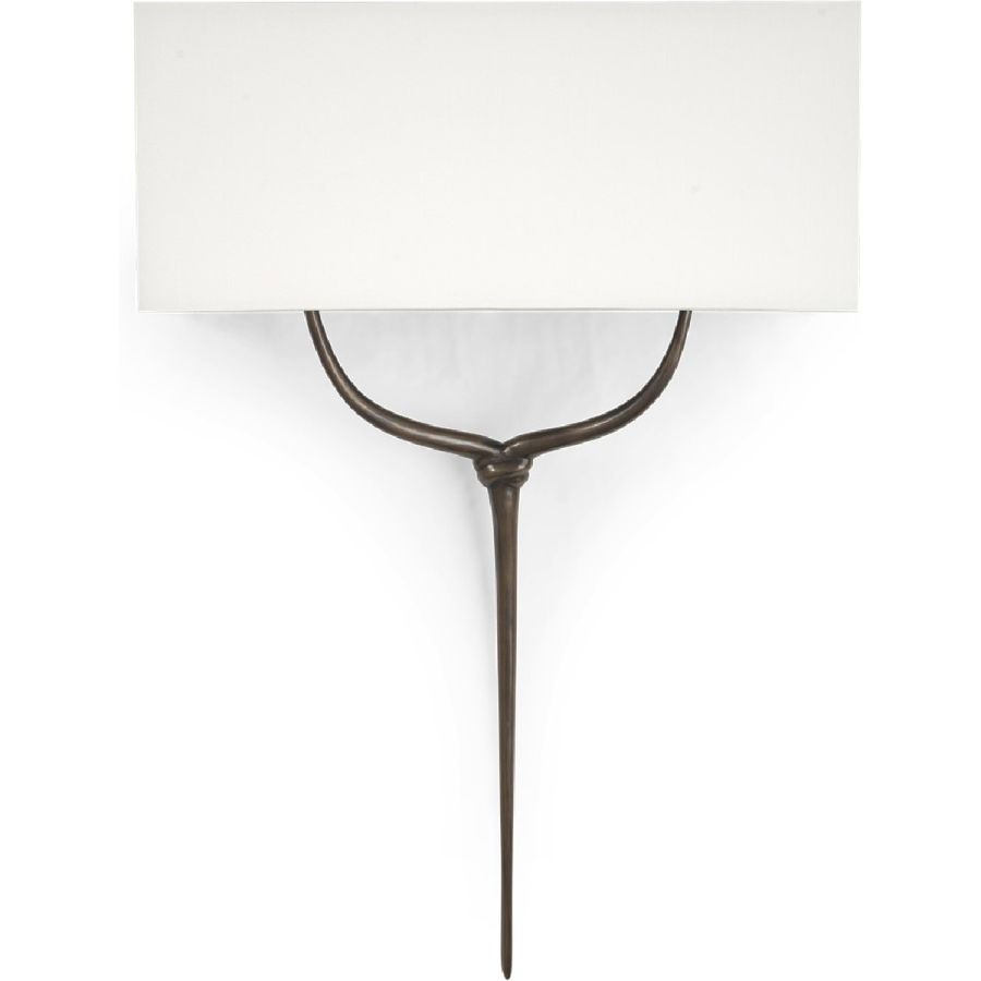A subtle and elegant wall lamp with antique brass knot and stem detail with a fluid and elegant form.