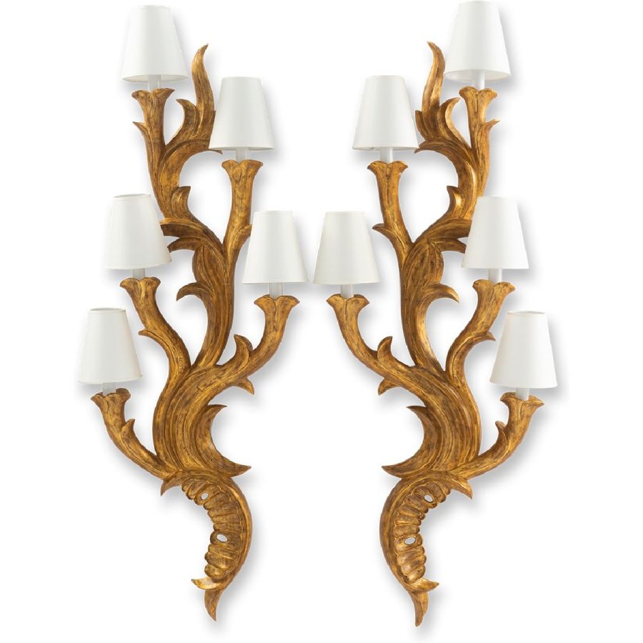 Fabulous pair of five-branch wall sconces for contemporary styling, or more traditional environments. Supplied as a left and right pair.