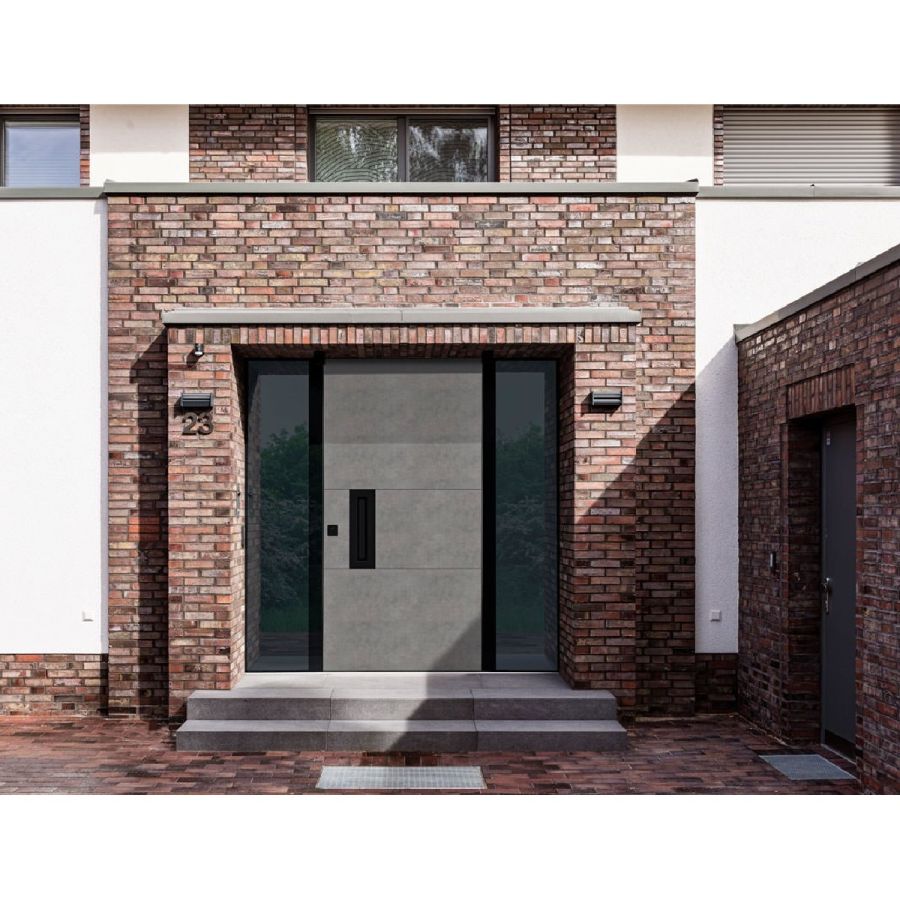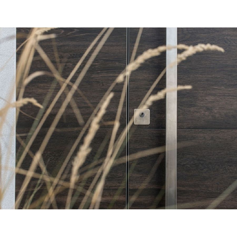 frame system, where the frame is concealed on the outside. The surface material of the ceramic front door can thus be continued on the frame or the façade.Main features