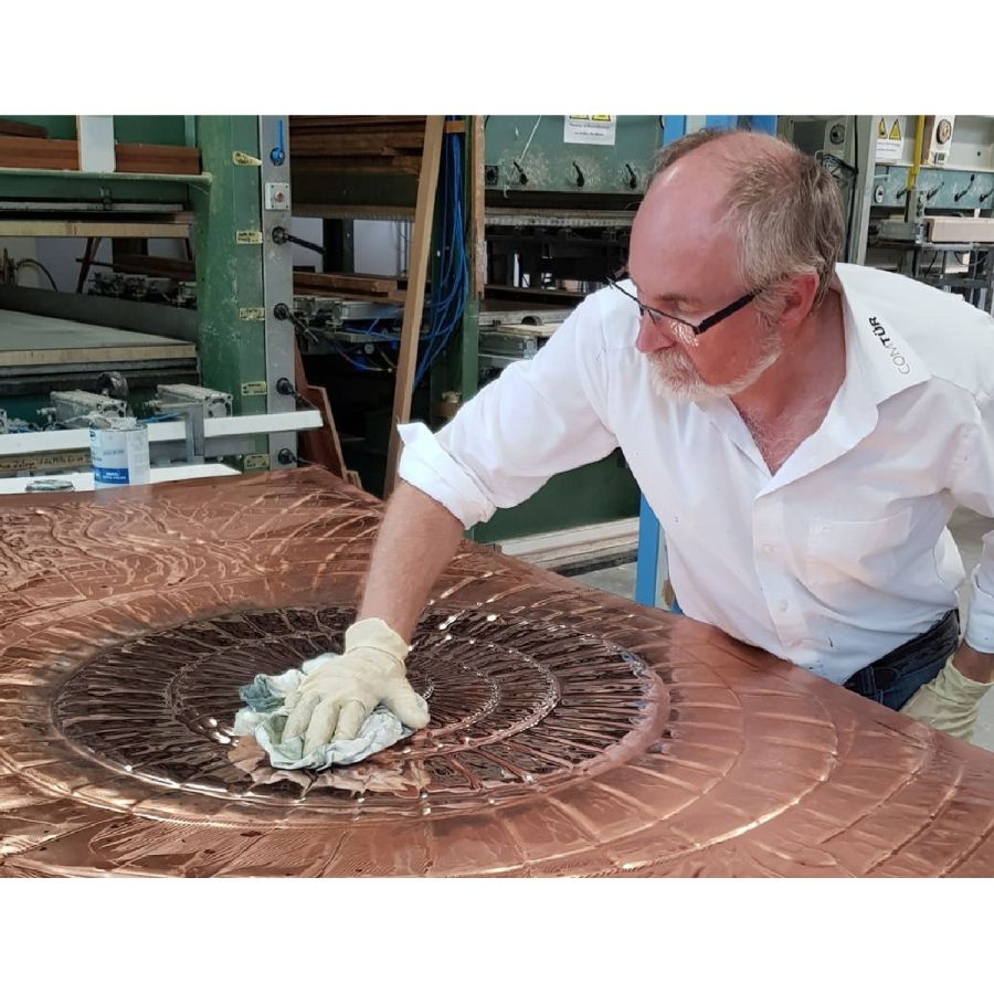 Kupfer ist ein Naturprodukt und ermöglicht auf der Türaußenseite eine absolut robuste, korrosionsbeständige und wetterfeste Oberfläche. Das Original Kupfer wird im Werk per Hand patiniert und lackiert.