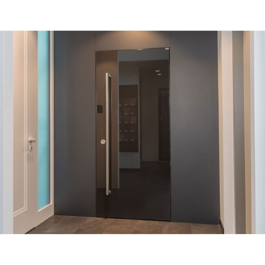 Additional design space is achieved when the glass surface runs over the entire entrance area, as a complete door construction or as a wall panel. If you want somethingunique special, choose a mirror instead of glass.