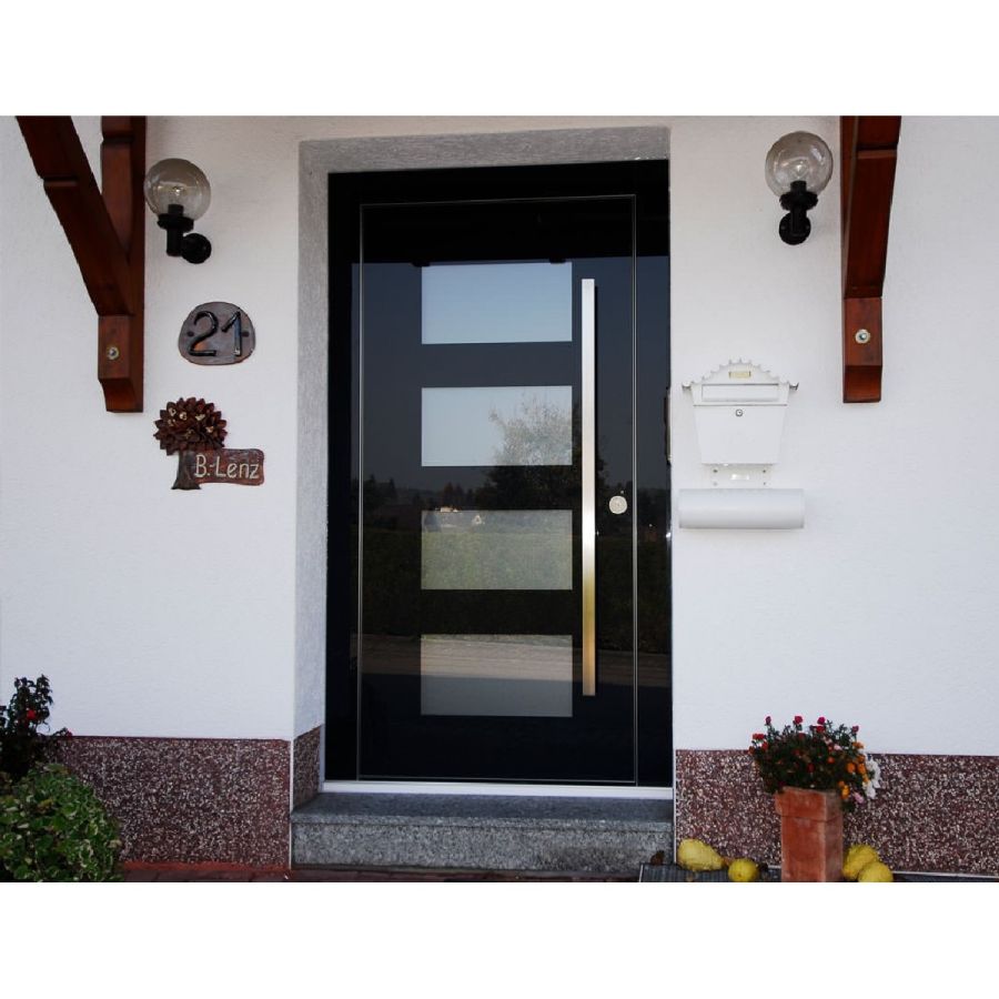 Sockelblenden schützen die Abschlusskante der Haustür vor Stoß und Tritt und lassen das Niederschlagswasser ablaufen. Je nach Türdesign erhalten Sie flächenbündig eingefräste Edelstahlblenden für moderne Haustüren oder Wetterschenkel mit Tropfnase bei Stilhaustüren. In der richtigen Oberfläche ergänzen sie das Erscheinungsbild Ihrer individuellen Haustür.