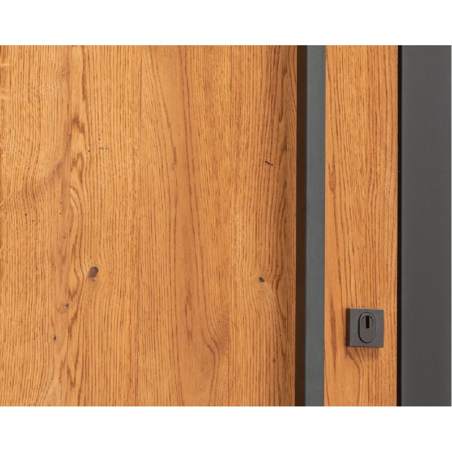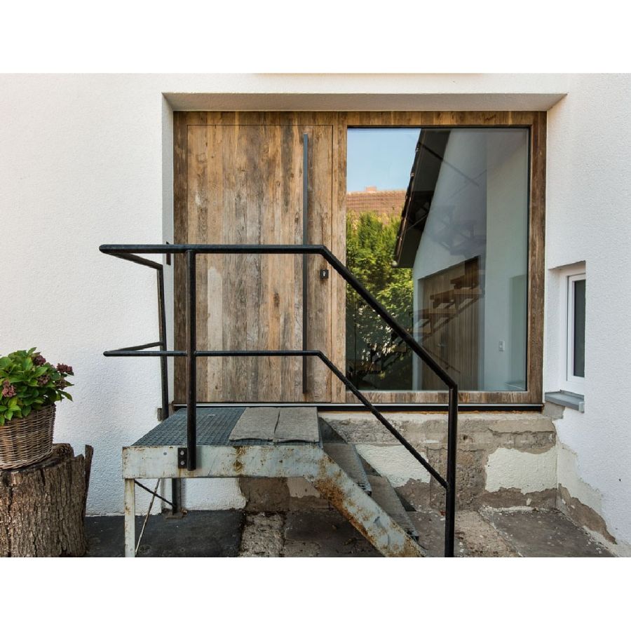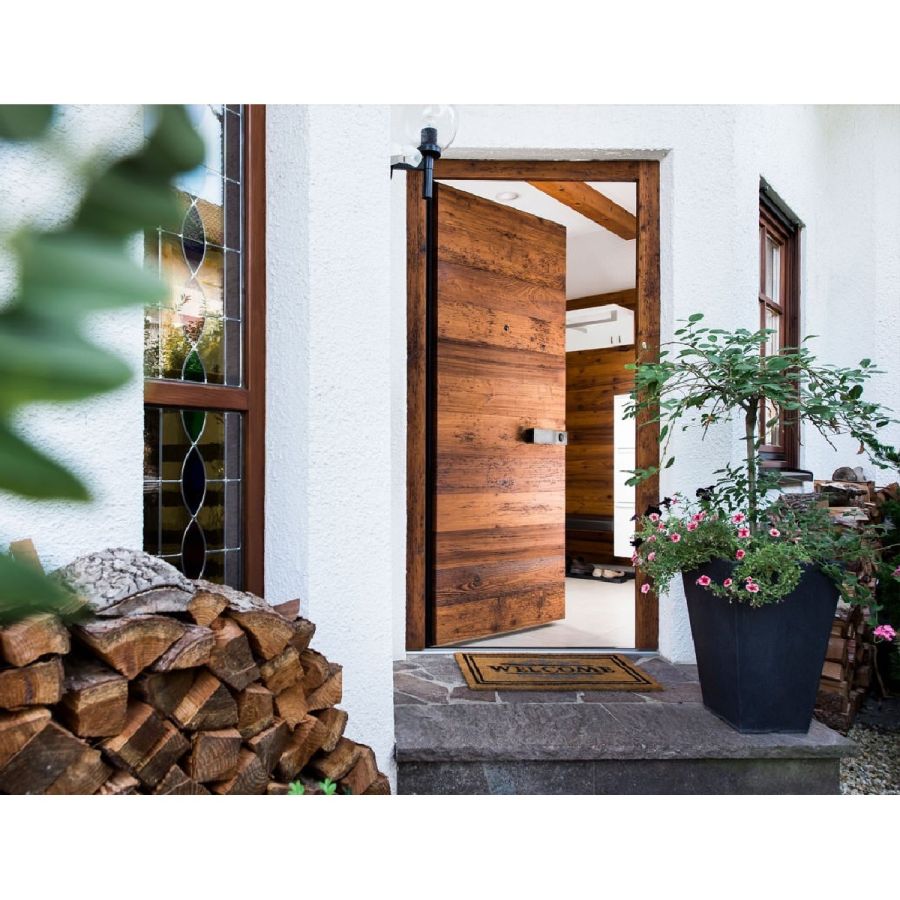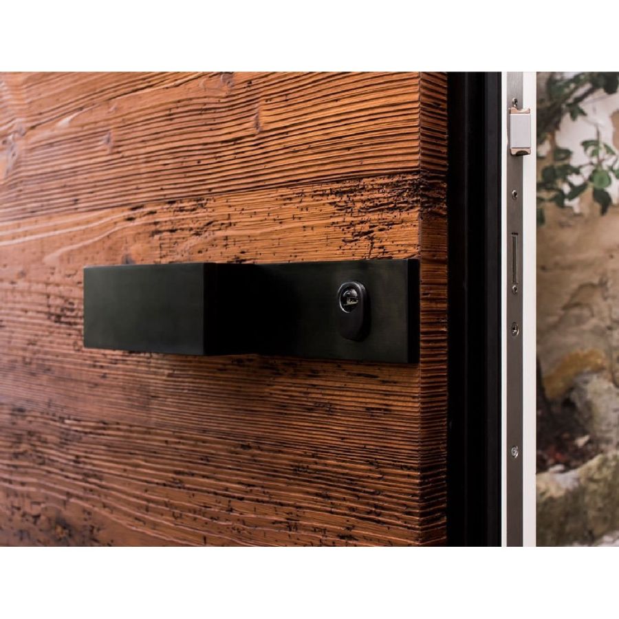 The Duotherm technology of our entry door systems allows this unique, natural material to be used as the cover surface of the entry door. The door leaf consists of individual boards which are precisely butted together for a real boardappearance. The door leaf edge made of solid material ensures a consistent highquality appearance. The combinations with black fittings or flush stepped glazing gives the door a more modern appearance.
