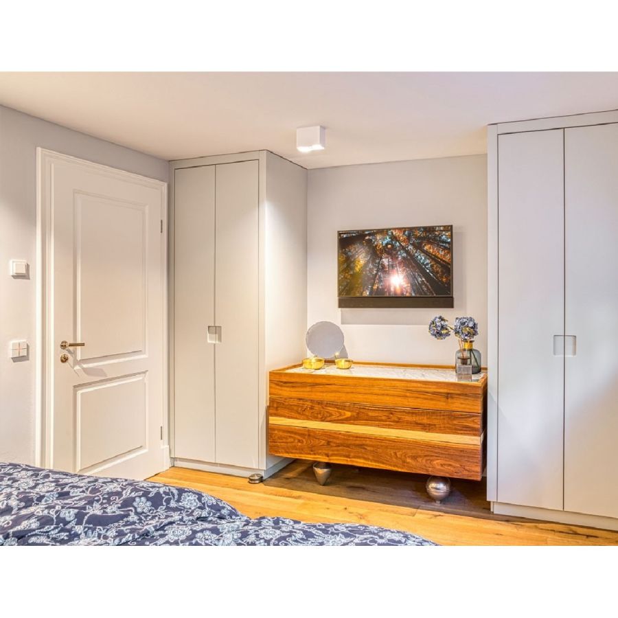 Die Basis für unsere Hochglanz Türen ist ein handgespritzter, mehrschichtiger Lackaufbau mit manuellen Zwischenschliffen für ein einschichtiges, hochglänzendes Finish. Alle Farbtöne z.B. nach RAL, Farrow & Ball oder PANTONE sind möglich. ComTür unterscheidet in die Oberflächen in Hochglanz und Hochglanz spiegelpoliert.