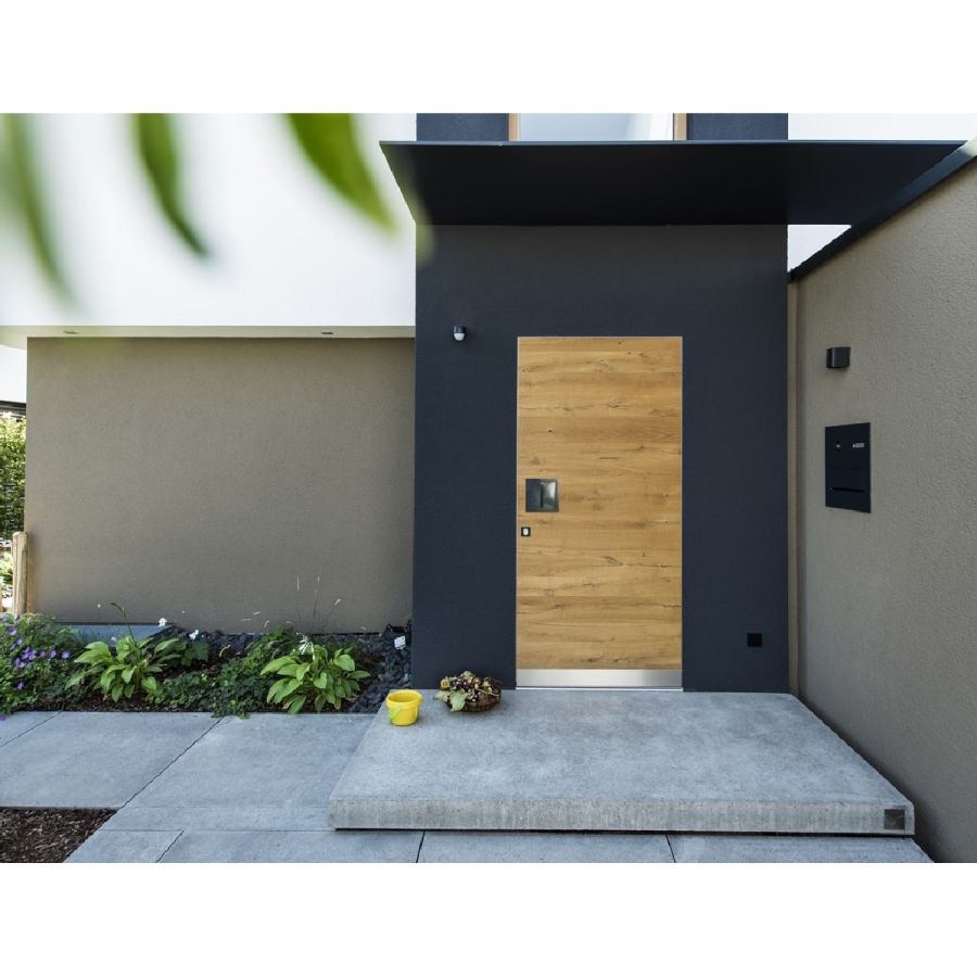 Modern, simple architecture combined with the naturally grown material wood, these are our wooden entrance doors from the NATURA product line. The CT-OIL and CT-PROTECT surface systems make an additional difference with over 30 differentvariations. The wooden finishes are to be cared for like a high-quality piece of furniture, and appropriate care sets are available.