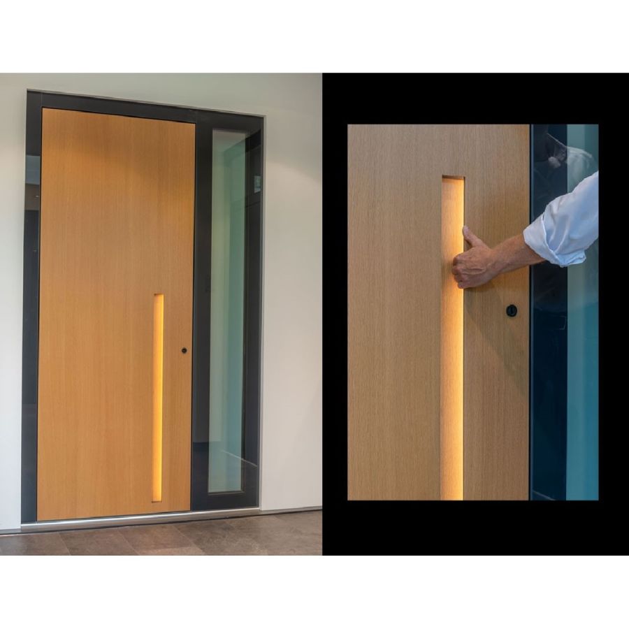 NEU: Das selbst entwickelten Griffmodul INTEGRAL. Es kann je nach Türdesign in Größe und Oberfläche passend gestaltet werden.