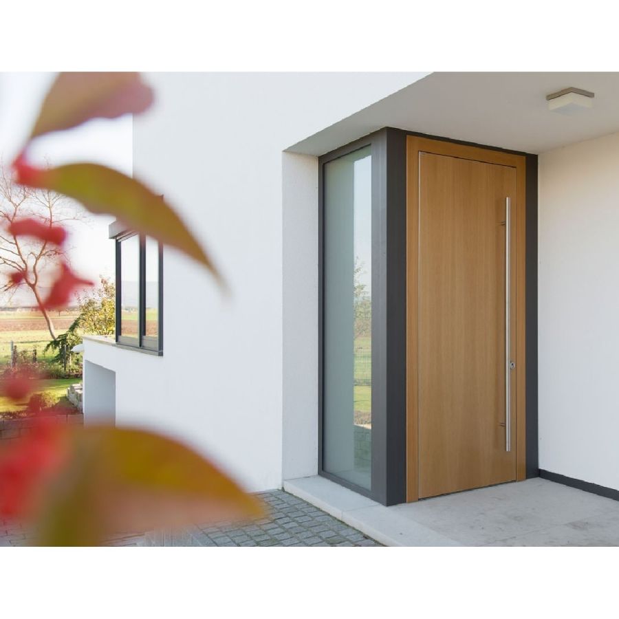 Twin gibt Ihnen in der Kombination aus wunderschönen Furnieren und Farblackoberflächen die Möglichkeit Ihre Hauseingangstür Holz individuell zu gestalten. Die Holzarten kommen besonders schön zur Geltung, wenn diese wie ein Bild von einer passenden Farbe umrahmt werden.