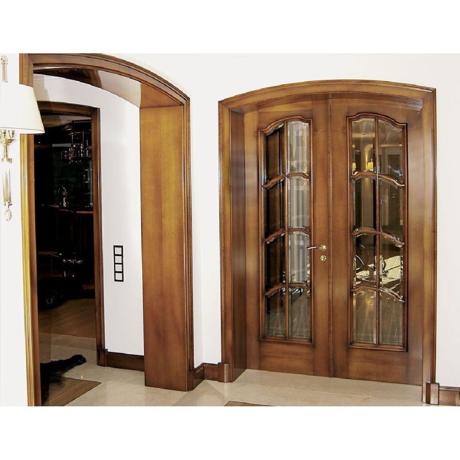Style door with curved real panel inserts, curved panel profile TF05 and trim bars A01 / A02.