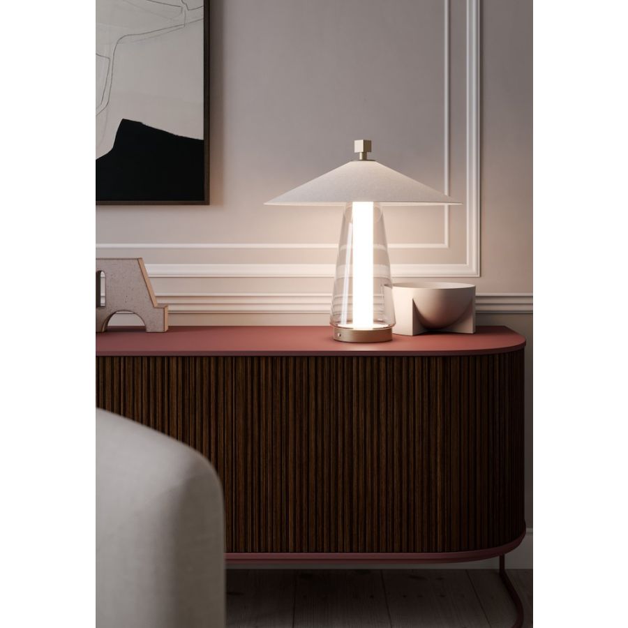 A product range characterised by a clean and linear form, yet with a strong personality, Asia’s lampshade is inspired by the pointed hats of Chinese rice pickers, and the material combination of fabric, glass and metal is a further key feature of the collection.