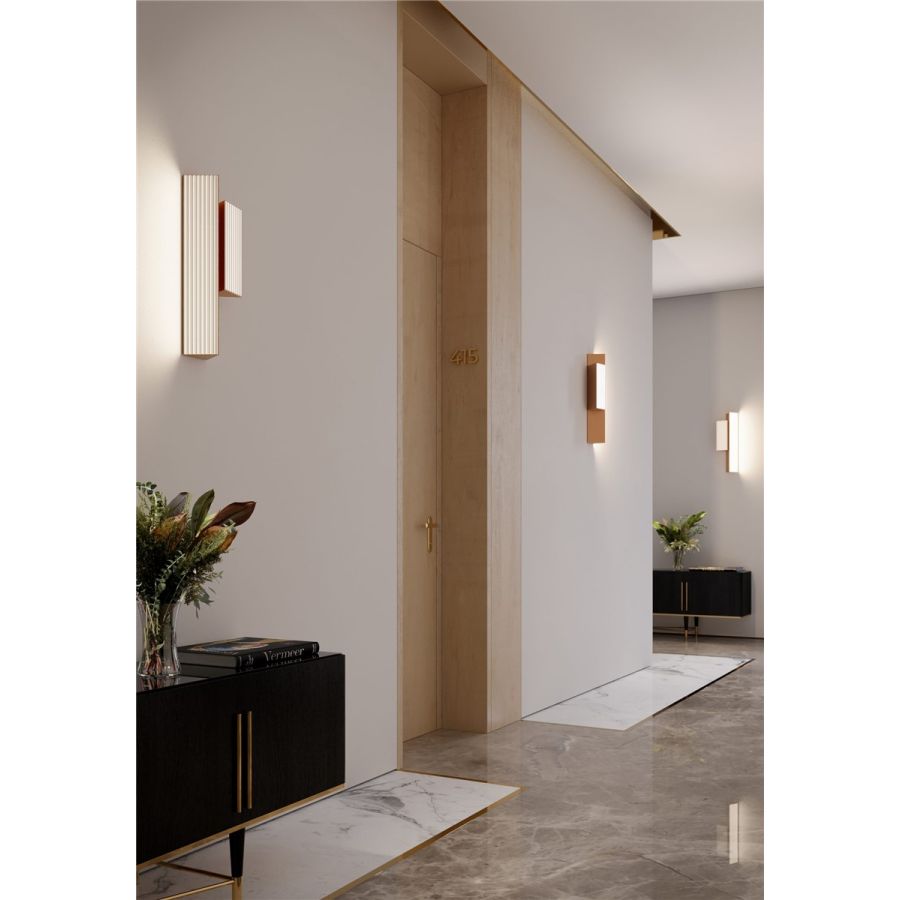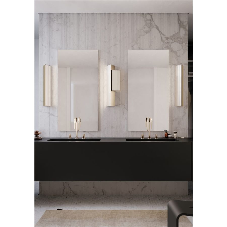 Like the other lamps in the Stick collection, the Stick ap double lamp is available in satin golden nickel and satin copper finishes.