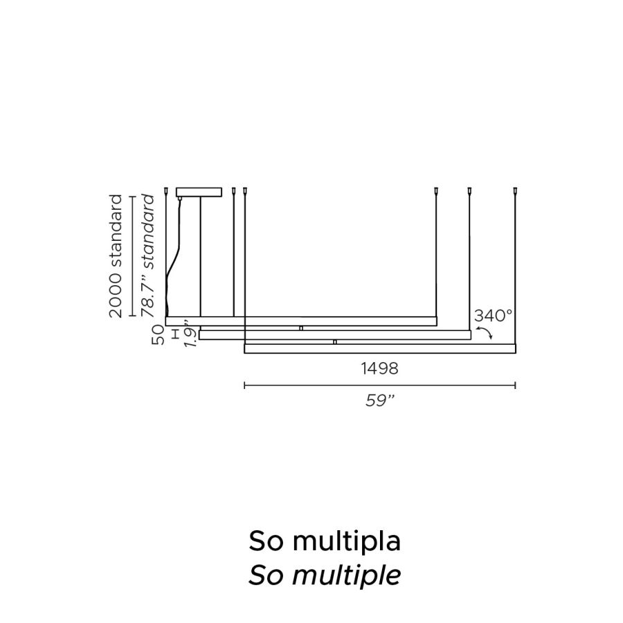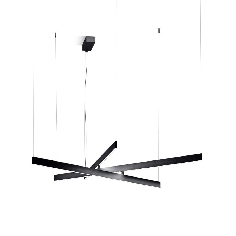 The Fly Multiple suspension version allows you to orient and position the arms to create different compositions, and provides double light emission (above and below) for both direct and ambient lighting. It is fixed to the ceiling at six points, with an additional fixing for the ceiling rose.