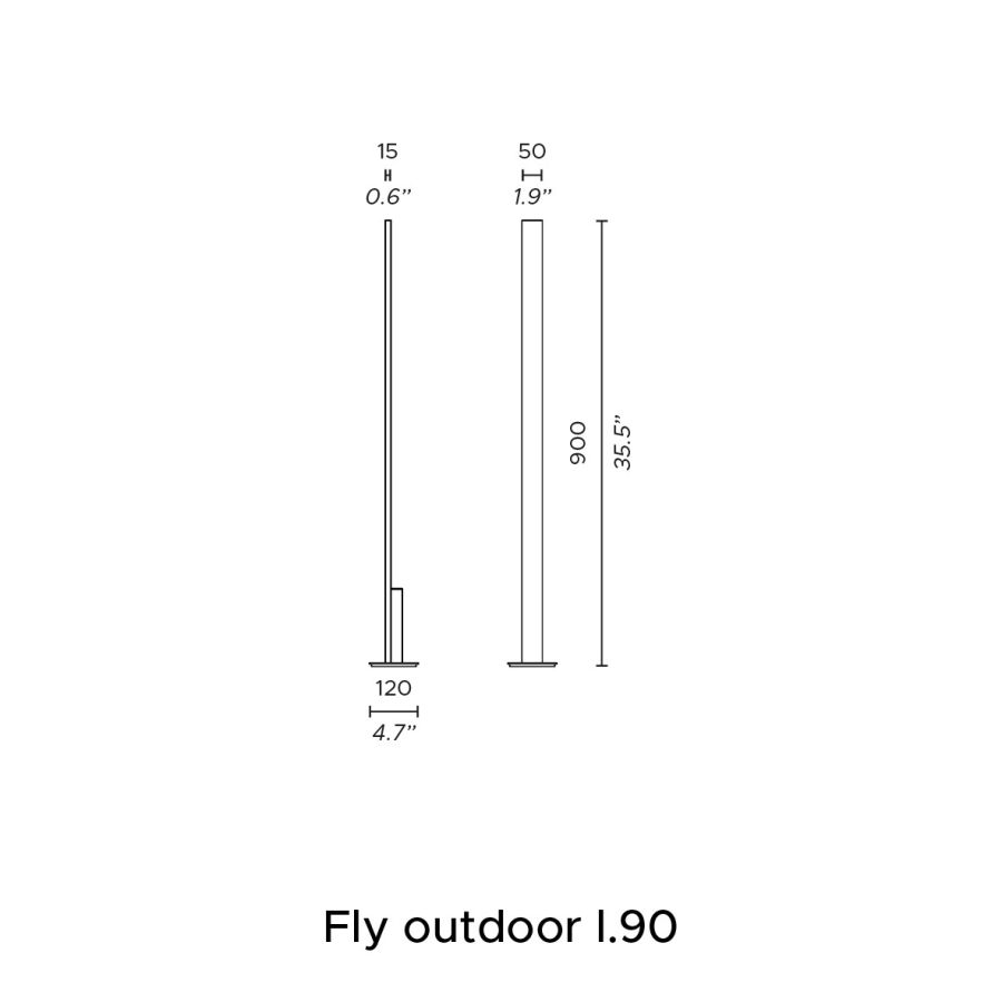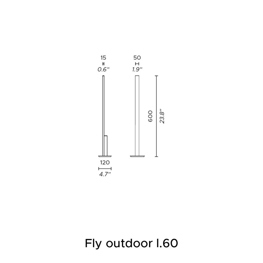 Fly Outdoor is also offered in two different heights, 60 or 90 cm, with double light emission. IP65 protection makes it ideal for outdoor use, in transit areas, driveways, as well as gardens.