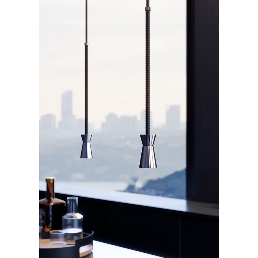 An innovative reading lamp, born from the idea of a portable and luxurious product to meet specific space and installation needs; this makes it suitable for contexts such as yachts and superyachts, historic buildings, or exclusive boutique stores. The head recalls a cocktail jigger (as the name G+T, or gin & tonic, suggests), and the arm is in brass covered with braided leather. Available in the battery version with a magnetic connection, or wall-mounted. The battery-powered model is rechargeable via the USB Type-C port (which in the wired version is used for charging smartphones or tablets).