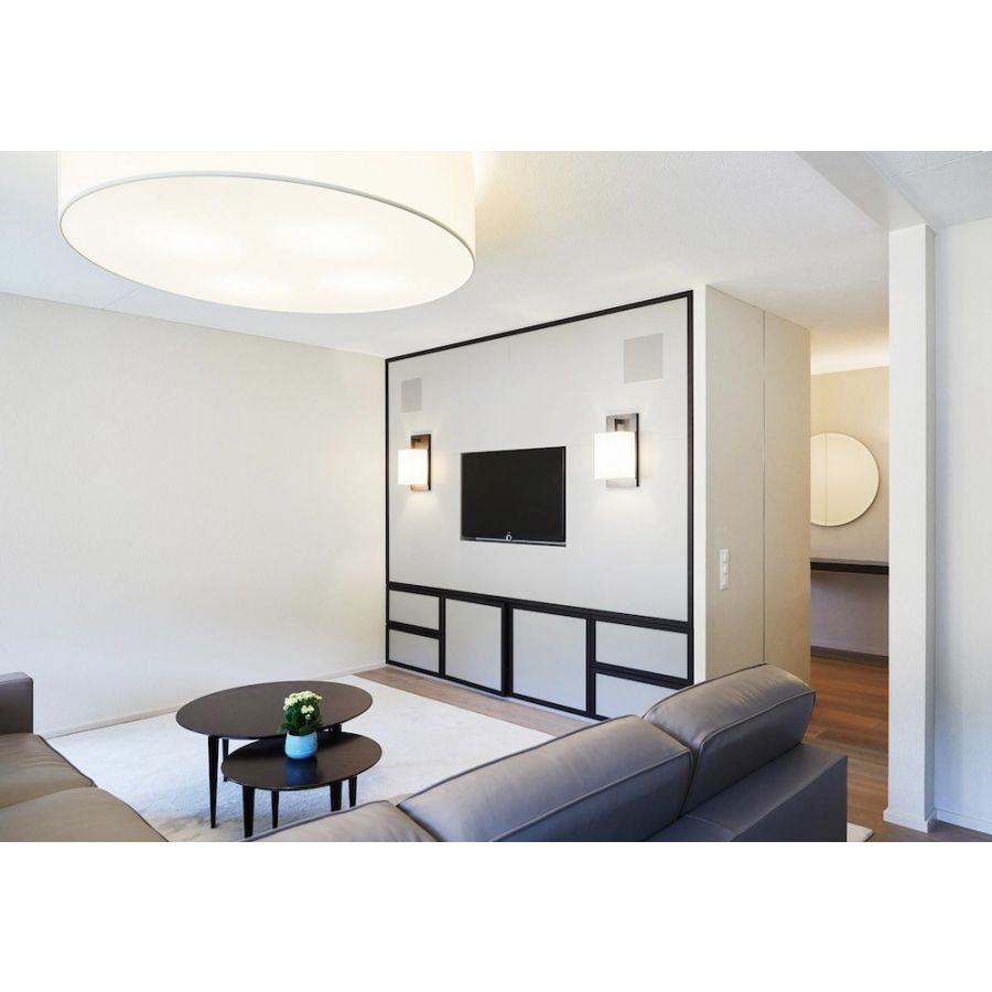 Circus LED is compatible with the main digital remote-control systems for lighting, an essential feature for use in commercial space projects. In both versions, the closures and the underlying diffuser discs are made and mounted with the harmonic wire that allows to slightly bend the edges of the diffuser disc, insert it and then place it on the inner crown of the lower frame. This guarantees the so-called drum closure which in terms of aesthetic finish is undoubtedly one of the most refined, as it does not resort to hooks or supports.