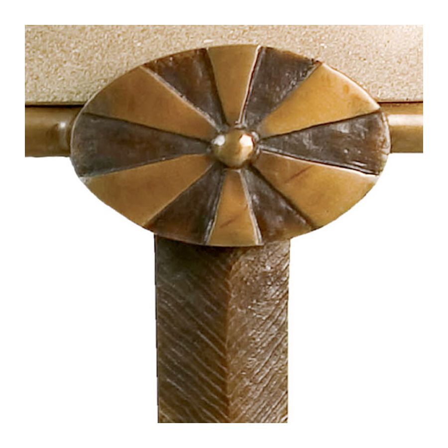 The coffee table Corona by Corbin Bronze is made of bronze with polished Indiana limestone top.