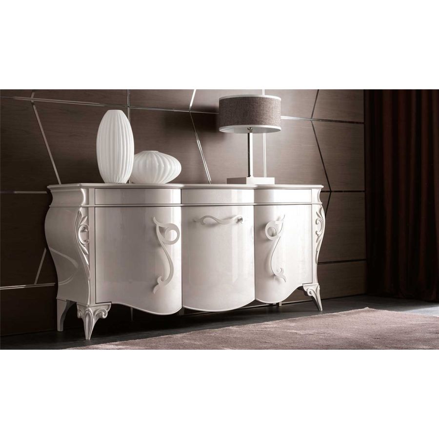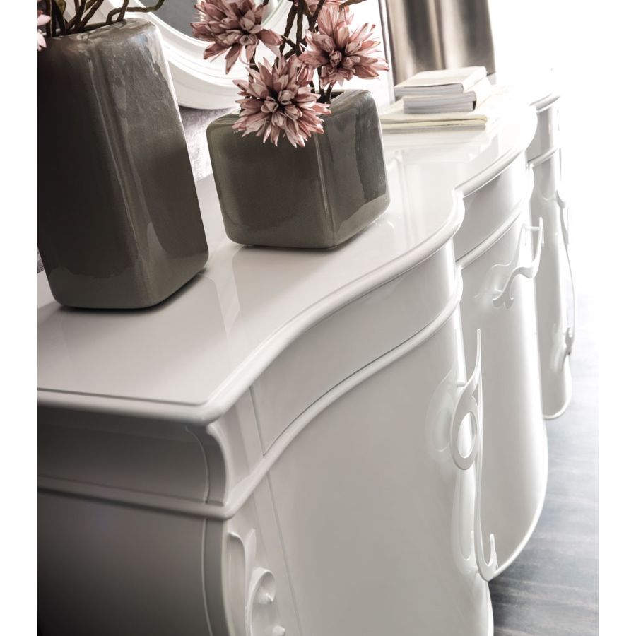 Aclassic-contemporary style for Pigalle sideboard, a real must for the production of the brand. Pigalle echo back to the use of curved lines, balancing and evolving the model to a clean, fresh and refined style. Pigalle echo back to the use of curved lines, balancing and evolving the model to a clean, fresh and refined style. With the 4 sinuous doors enhanced by the beautiful design of the handle and the push-pull drawers, Pigalle is available in a wide range of finishings, to be mixed also for different finishing of structure and top.