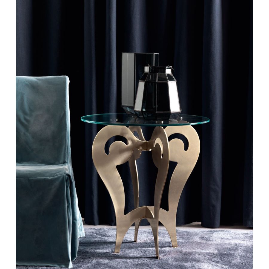 Bistrot table or sofa side with shaped iron base and glass, mirror or decorated wood top; where classic and contemporary design create a combination of great taste.