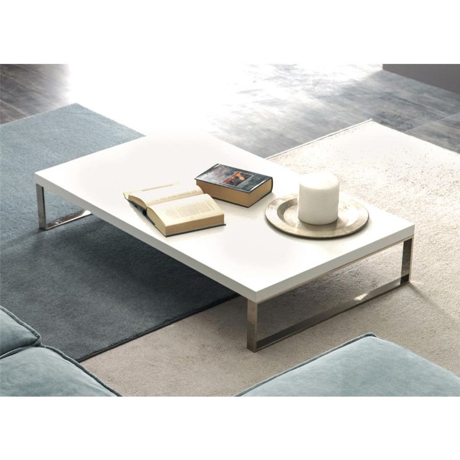A modern and minimalist coffee table with clean geometric forms and outlines, offering a superbly modern contemporary design. The beautifully constructed polished base, available in a choice of finishes – among which galvanic nikel or gold plating – features together with a stylish laquered wooden top, perfect in any modern setting. Also available with glass, marble, mirrored surface, and in different dimensions to fit every setting.