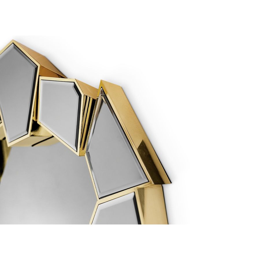 Made with the finest polished brass, the Crackle Round Mirror is designed to resemble a shattered mirror meticulously pieced back together, reminiscent of the ancient Japanese art of Kintsugi. This exquisite and luxurious mirror, featuring a gold frame, serves as the perfect statement piece to adorn any wall with its unique and captivating design.