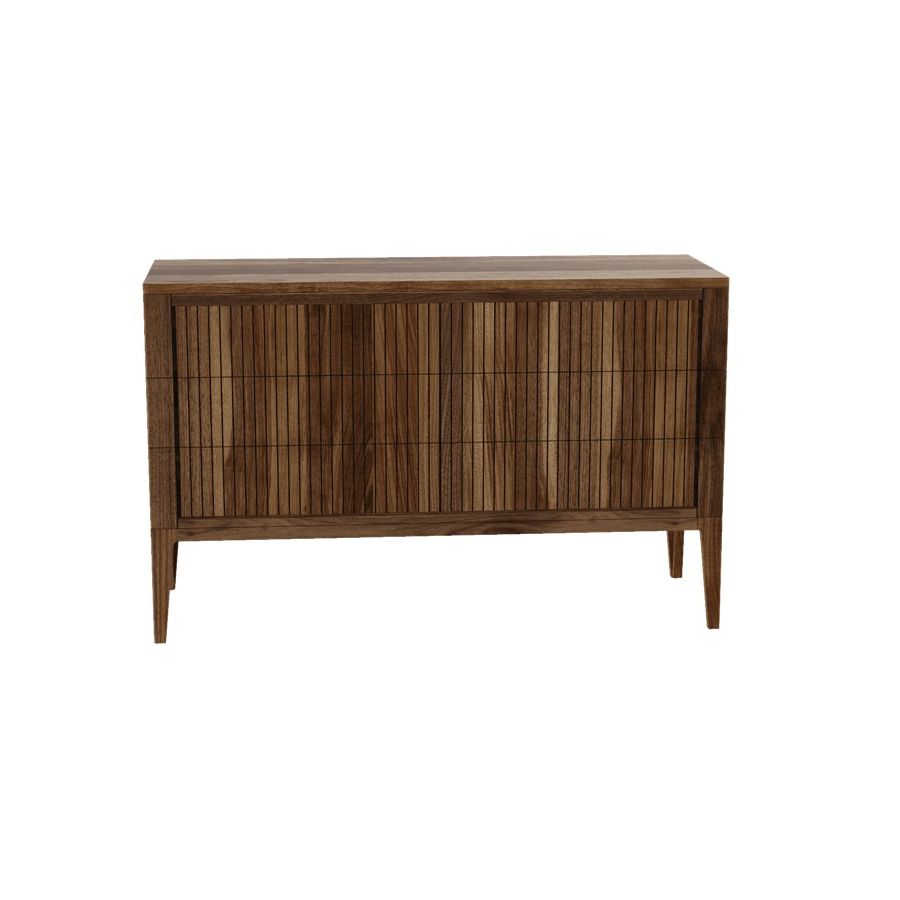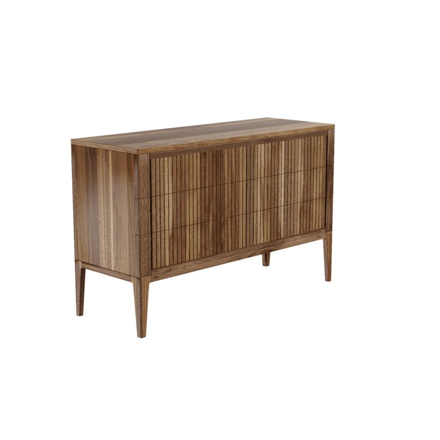 The Eleva solid wood drawer combines refined Italian design and skilled craftsmanship. The front doors, made of premium solid walnut with acrylic finish, create an intriguing contrast between light and shadow thanks to a linear style.
