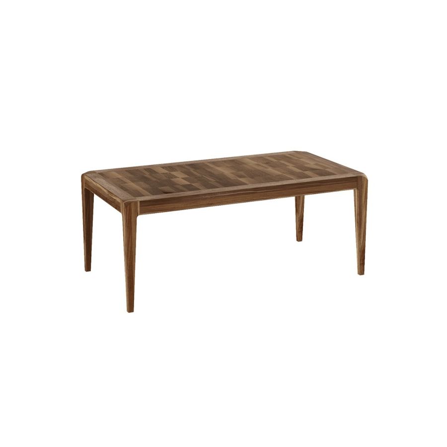 The Sentiero extendable table in solid wood is the expression of contemporary design and high quality Italian craftsmanship. Rectangular in shape, it features structure and legs in precious gray or natural walnut with inlay and wood finish. The possibility of being extended by means of under-top bands guarantees versatility and practicality. An essential, elegant and informal table.