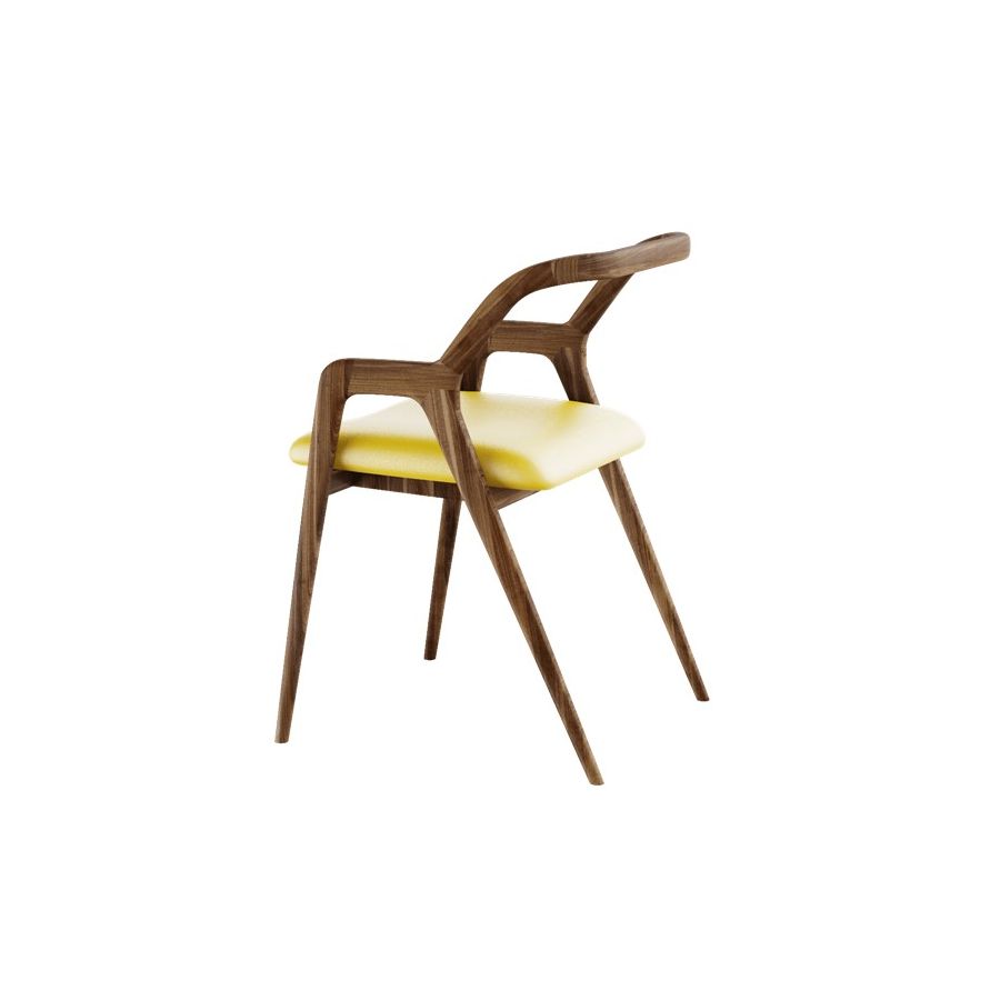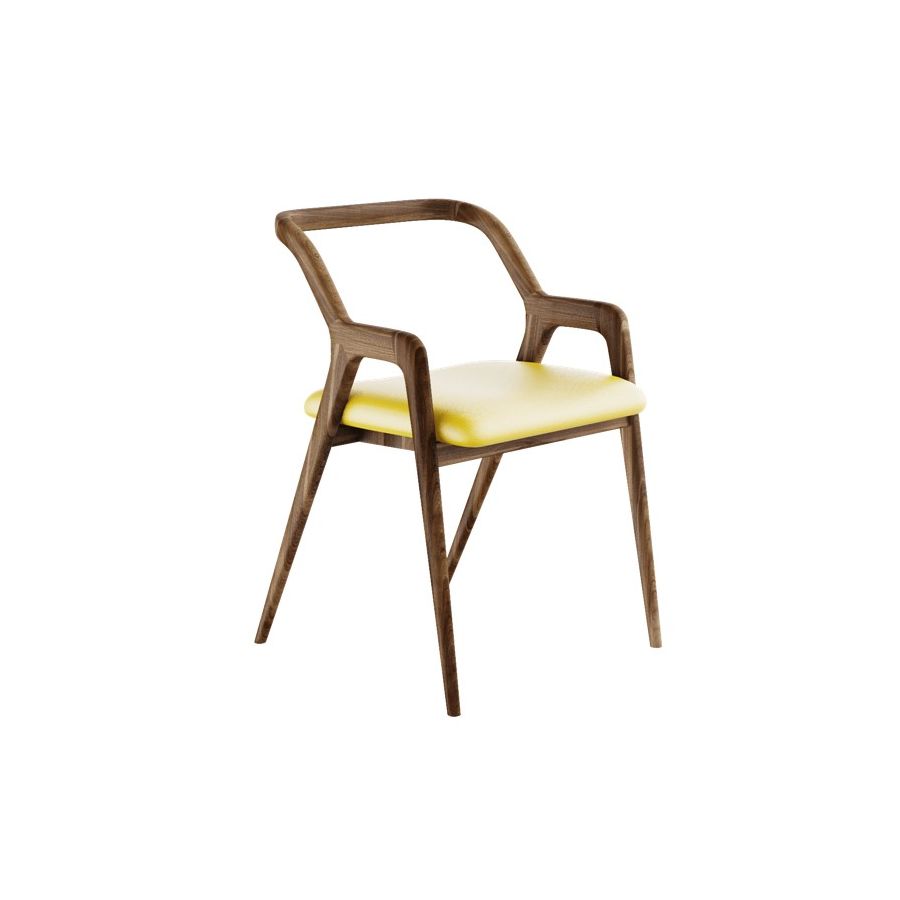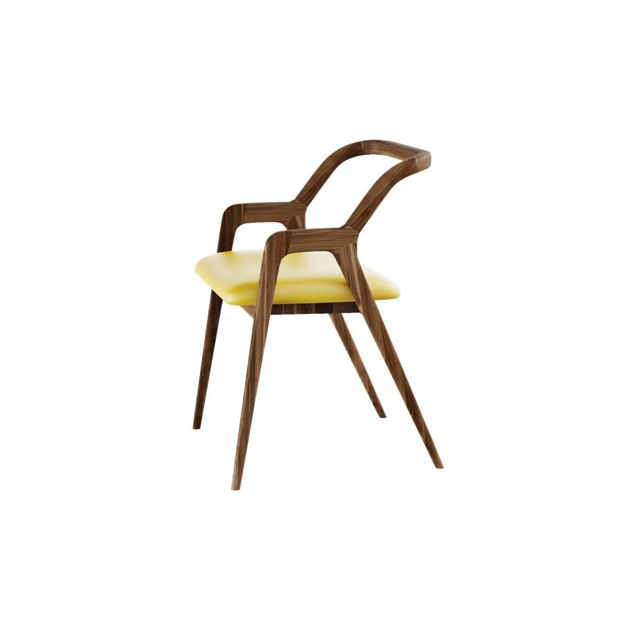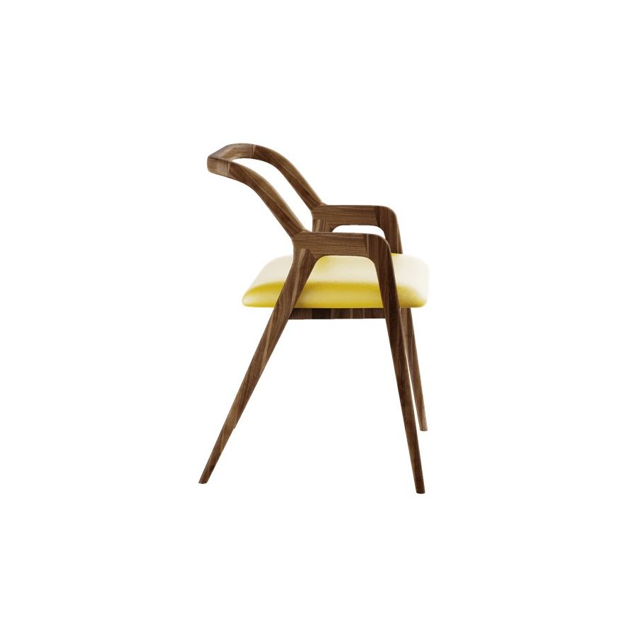 A solid wood chair with a refined Italian design, synthesis of craftsmanship, passion and attention to details. The walnut wood is hand-worked with extreme care and it feels almost soft to the touch thanks to the curved lines of the structure. Customizable lining in top quality leather or fabric and in different colors.