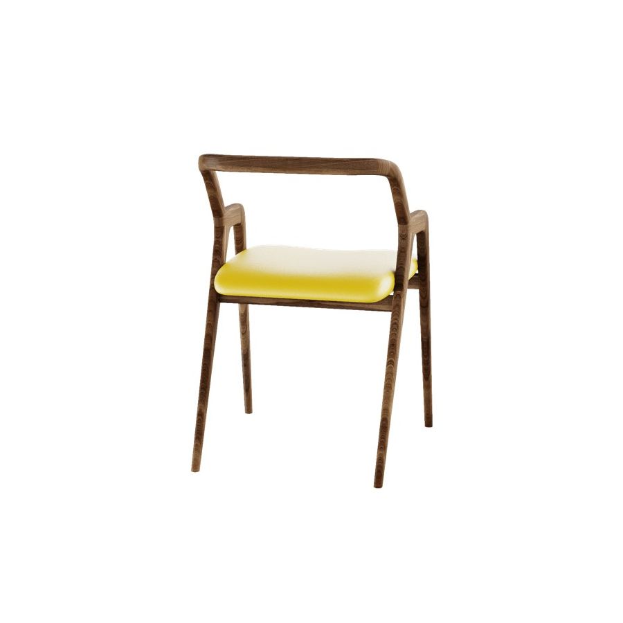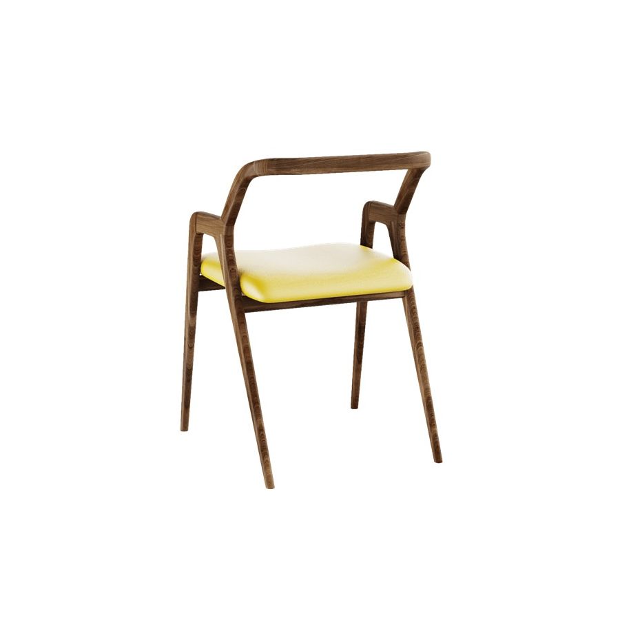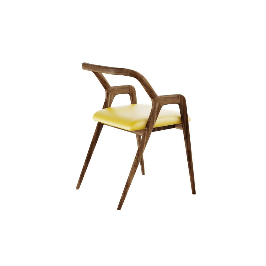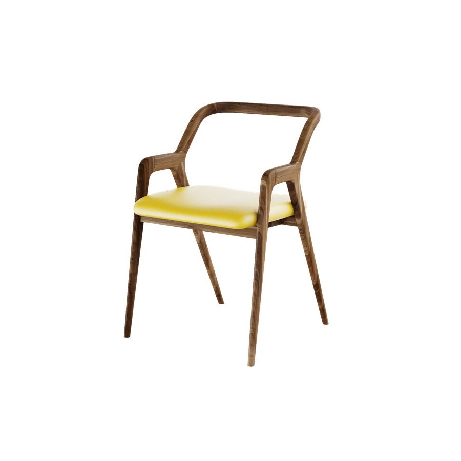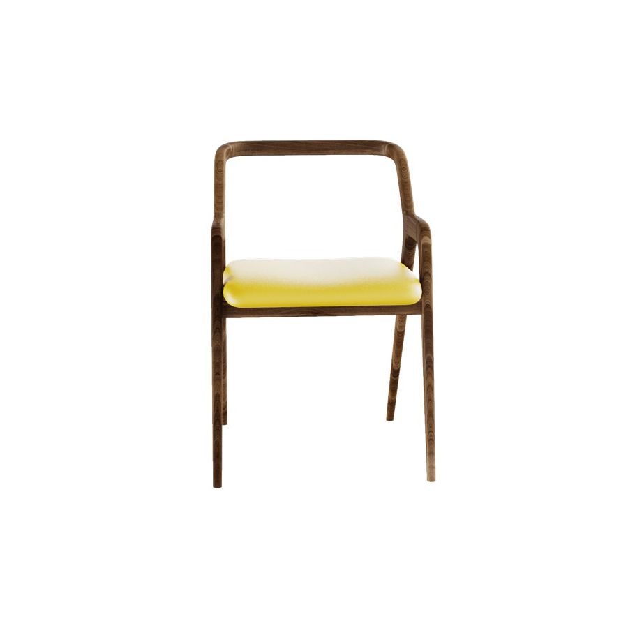 A solid wood chair with a refined Italian design, synthesis of craftsmanship, passion and attention to details. The walnut wood is hand-worked with extreme care and it feels almost soft to the touch thanks to the curved lines of the structure. Customizable lining in top quality leather or fabric and in different colors.