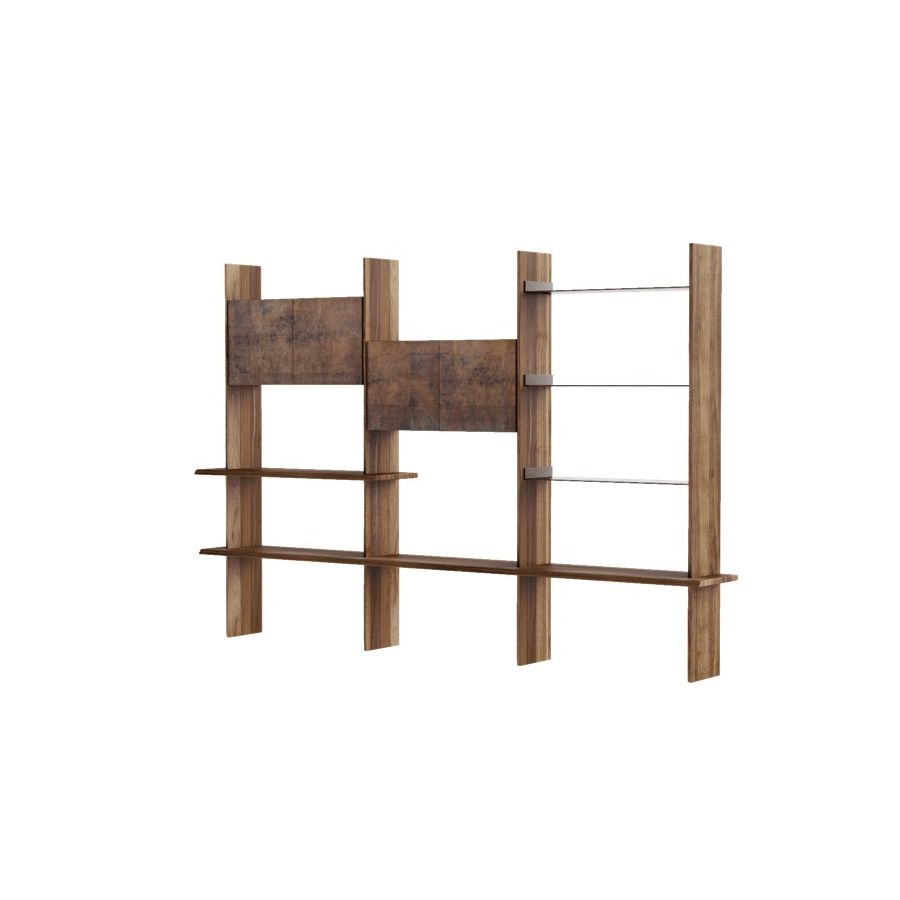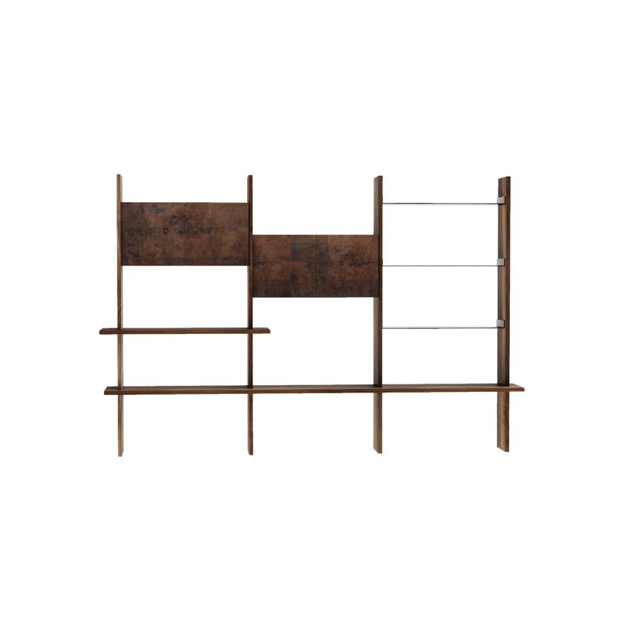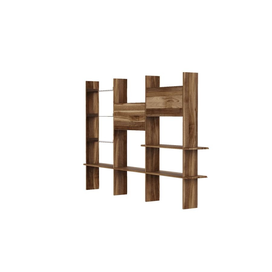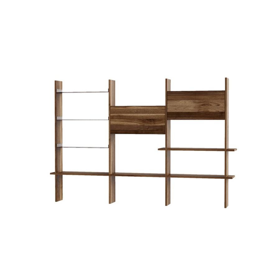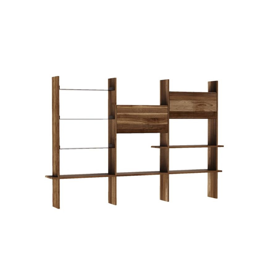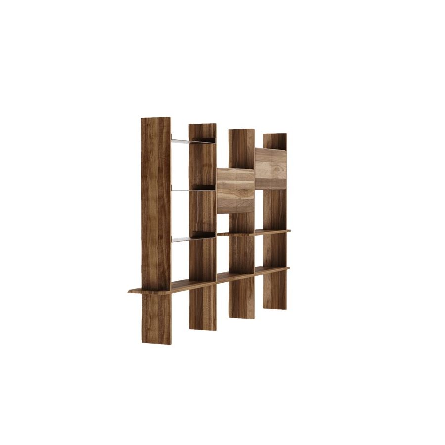 Capanna is a wall bookcase equipped with shelves and support floors and made of precious canaletto walnut finished with acrylic. The Italian artisan tradition is reinterpreted in a contemporary design to create a refined piece of wooden furniture. The flexibility of its modular and customizable structure makes this bookcase even more unique.