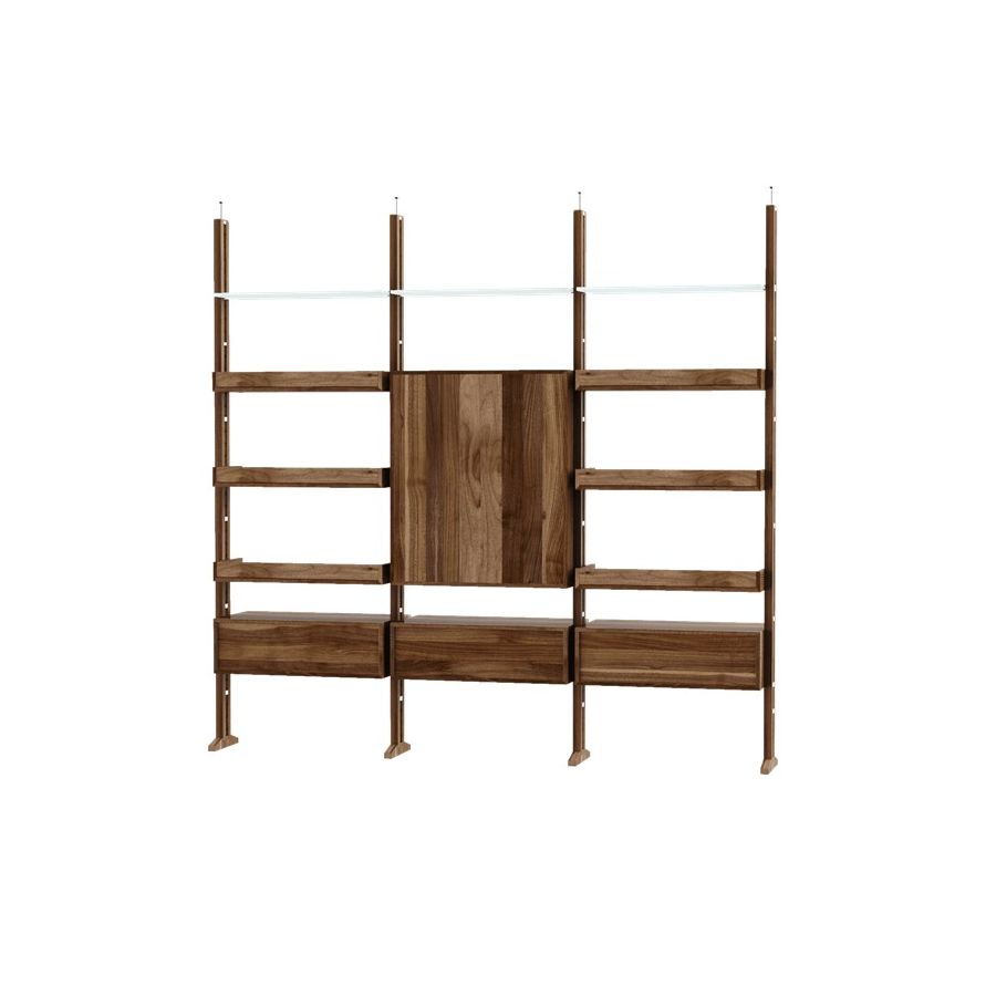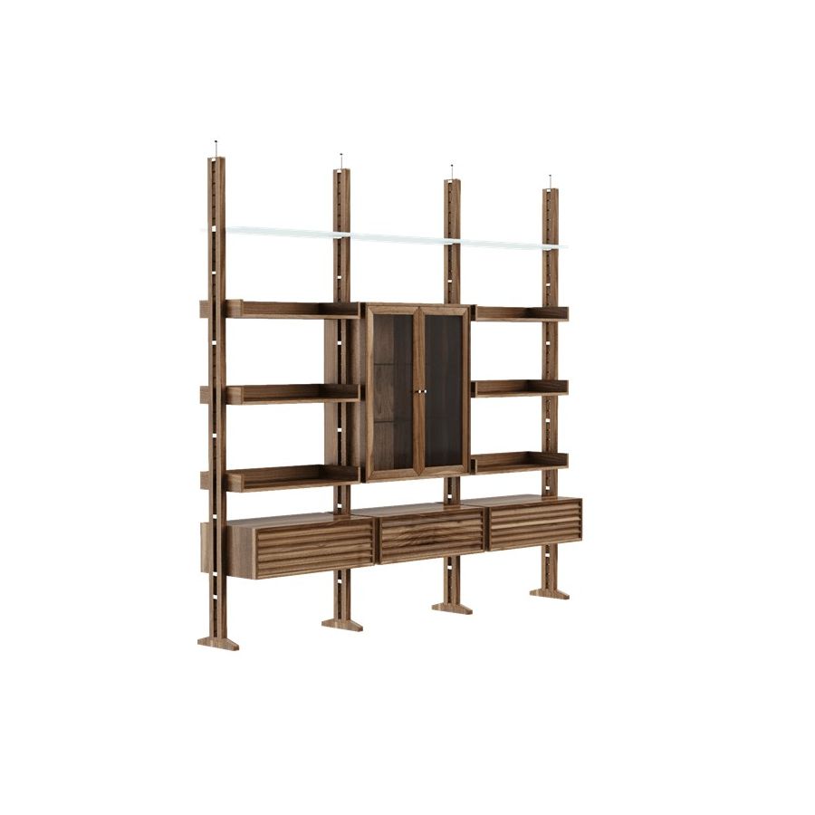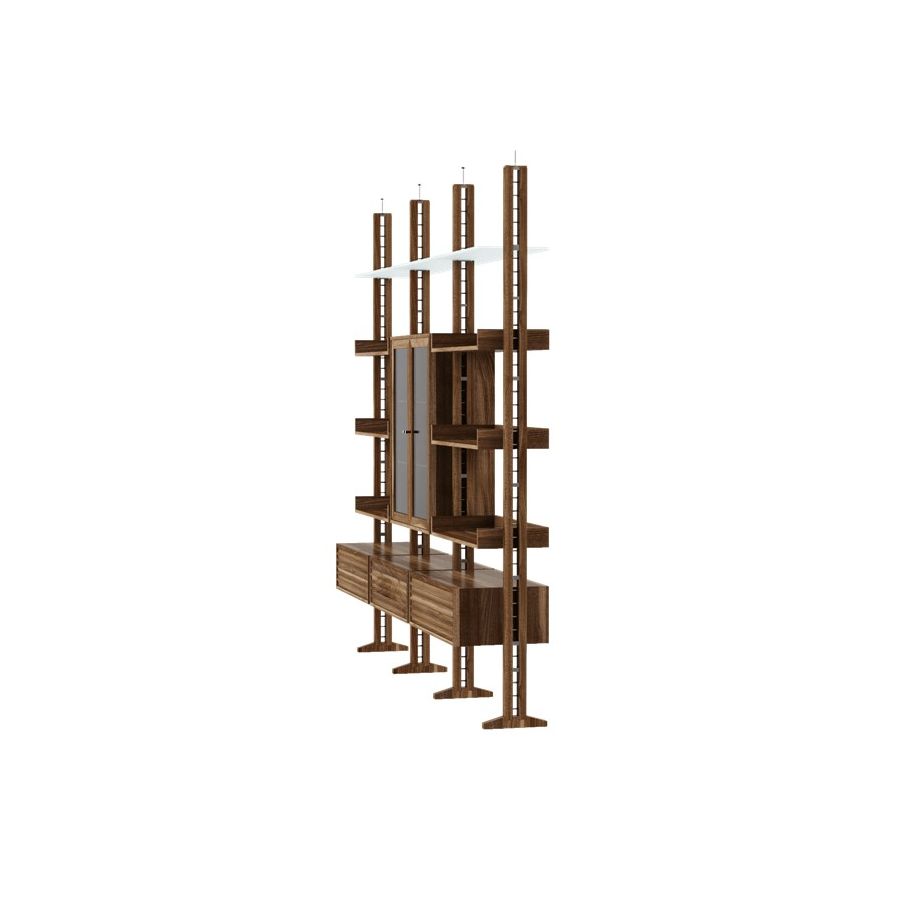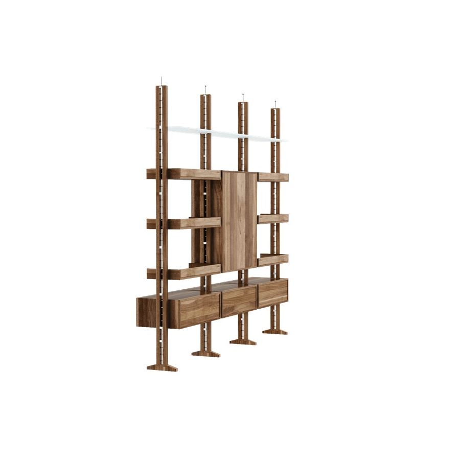 When refined and contemporary design meets the Italian craftsmanship tradition, a unique décor is created. The Dale Italia collection presents Elle, a wall bookcase equipped with containers and wooden or glass shelves. This solid wood piece of furniture in premium walnut enables maximum flexibility. It transforms into a partition wall finished on both sides and can change appearance according to the specific needs.