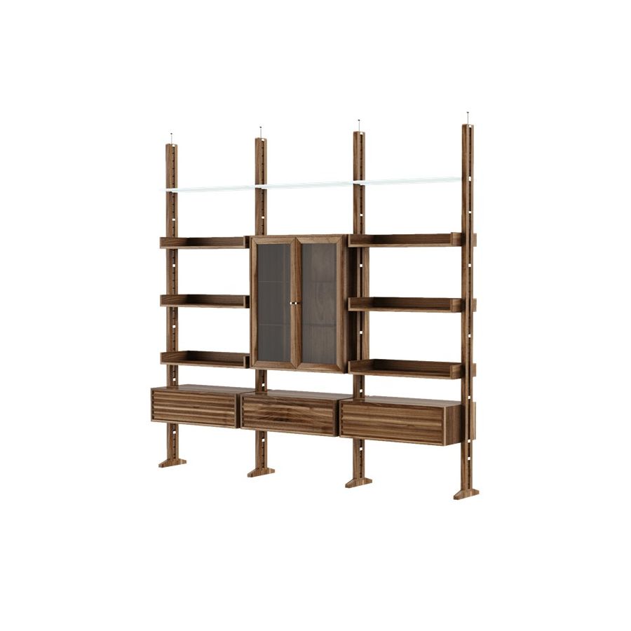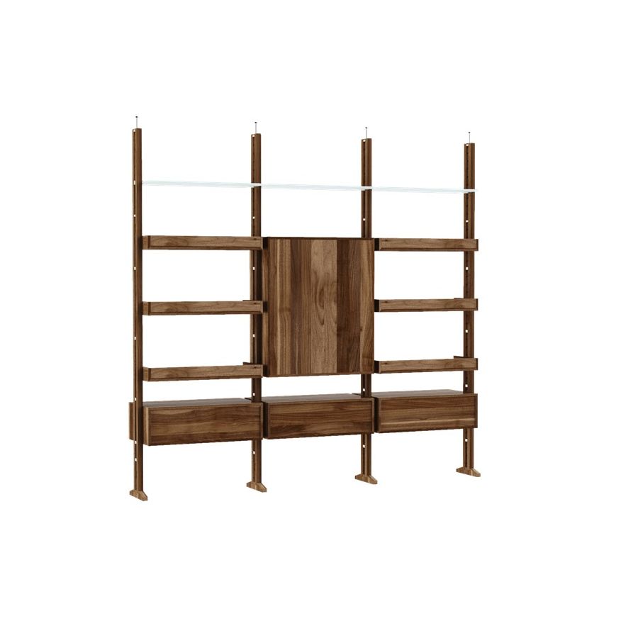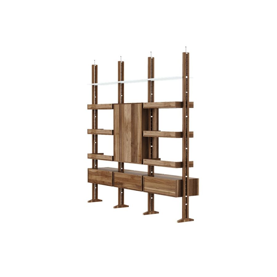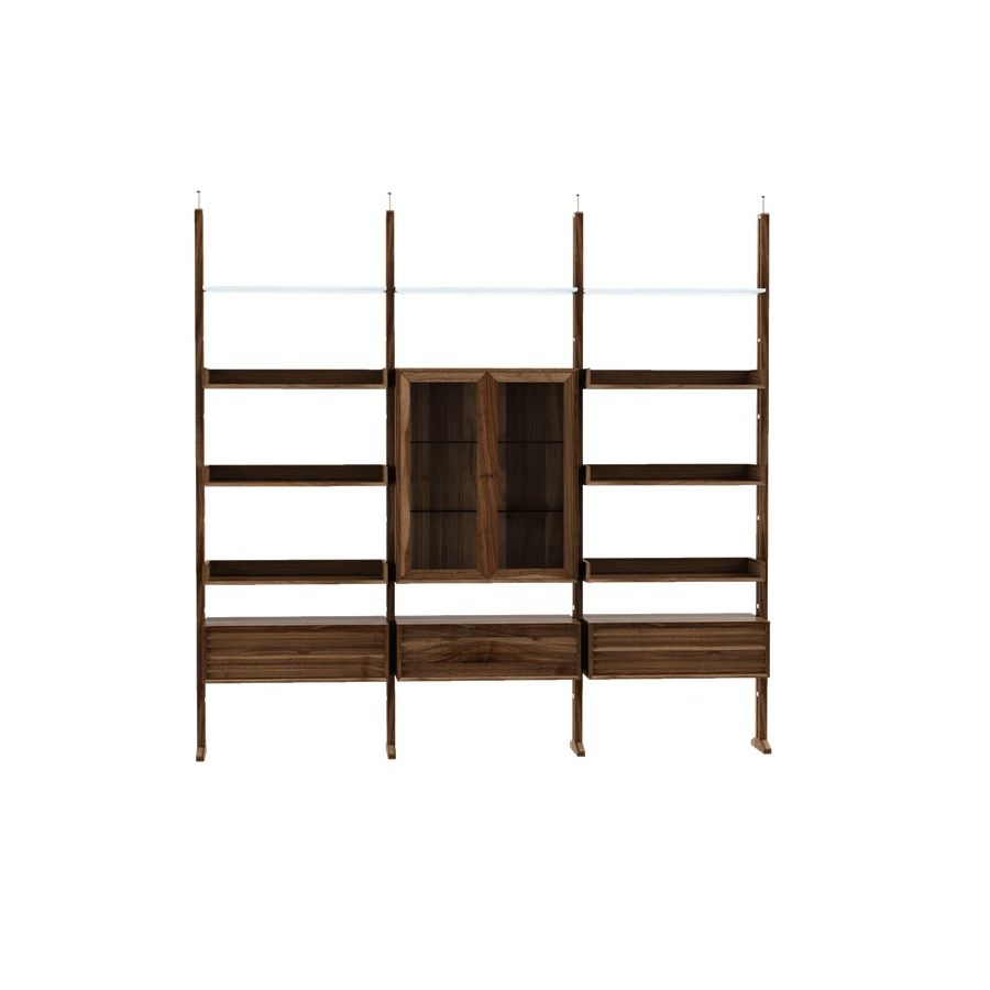 When refined and contemporary design meets the Italian craftsmanship tradition, a unique décor is created. The Dale Italia collection presents Elle, a wall bookcase equipped with containers and wooden or glass shelves. This solid wood piece of furniture in premium walnut enables maximum flexibility. It transforms into a partition wall finished on both sides and can change appearance according to the specific needs.