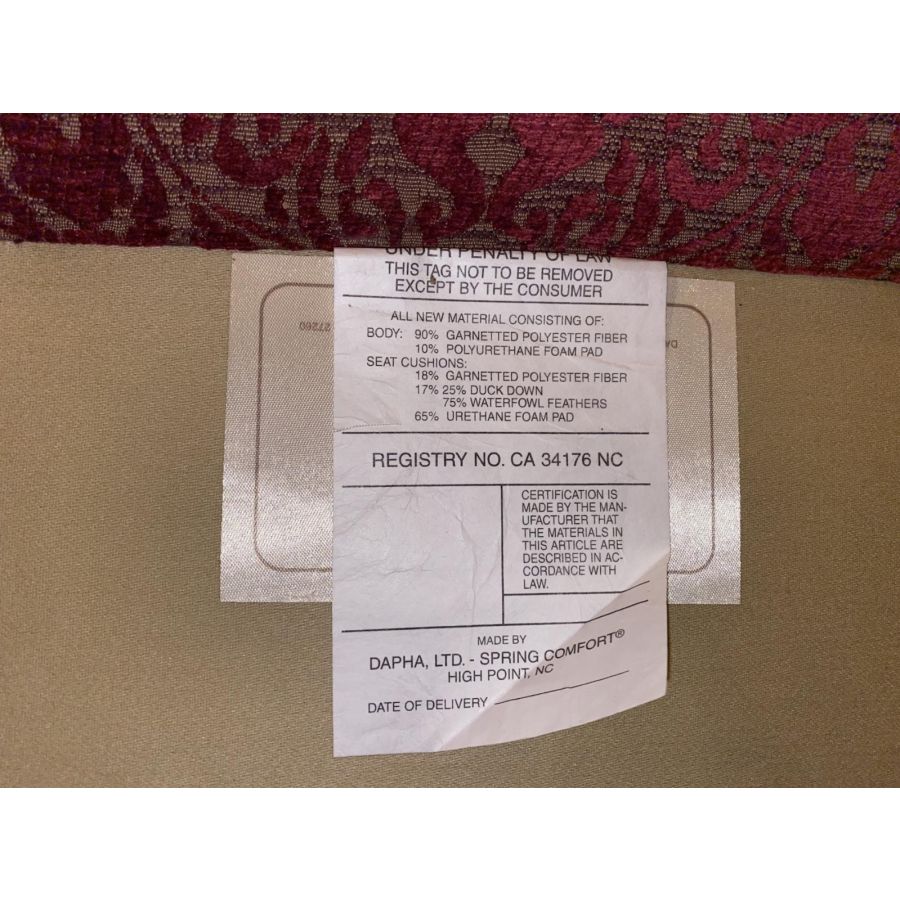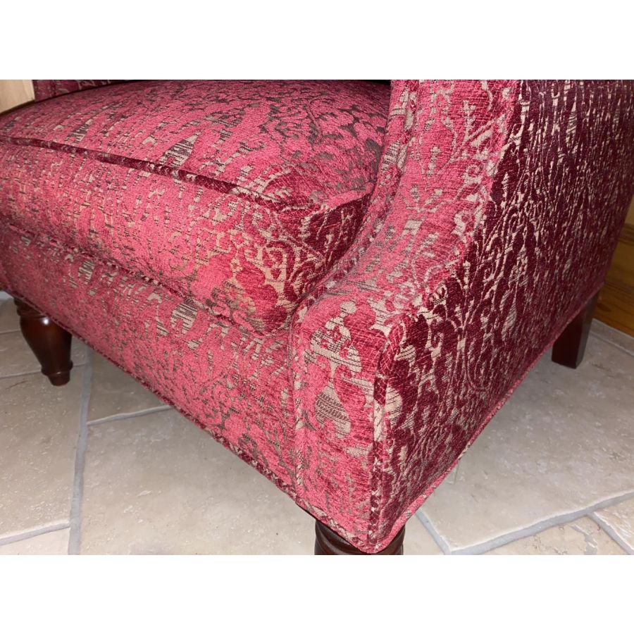 Legs: Stained hardwood with a graceful taper, complementing the upholstery