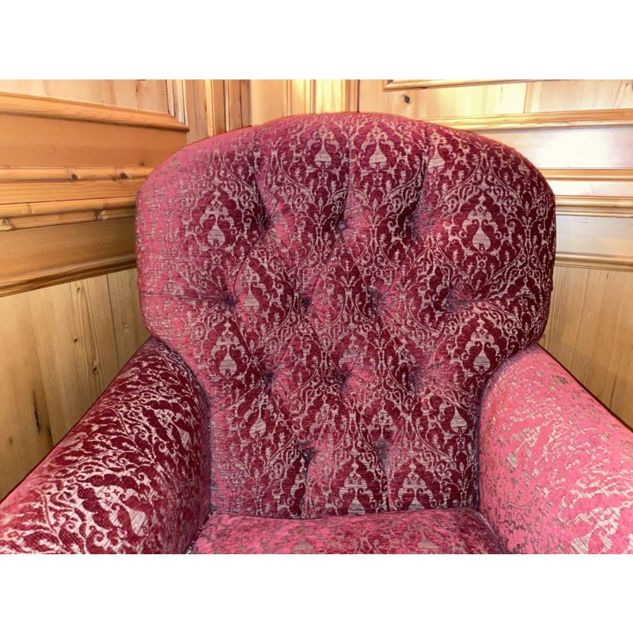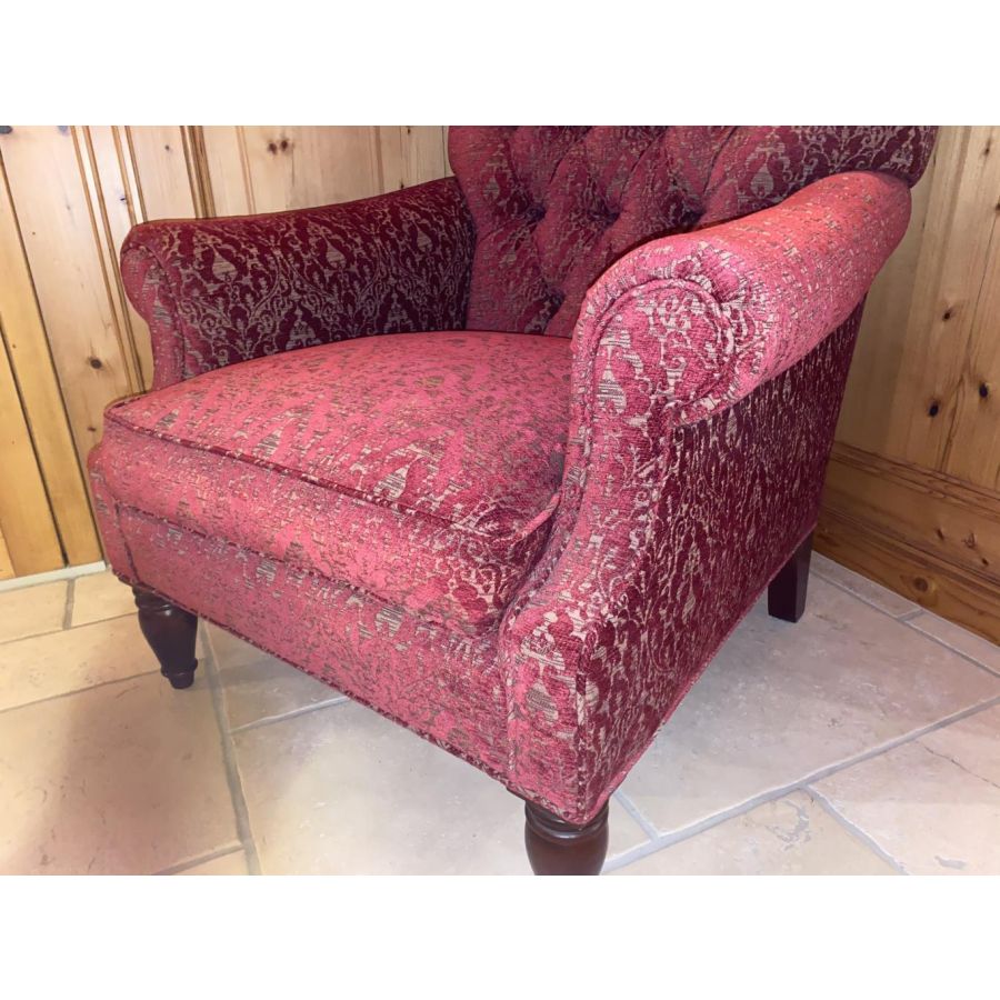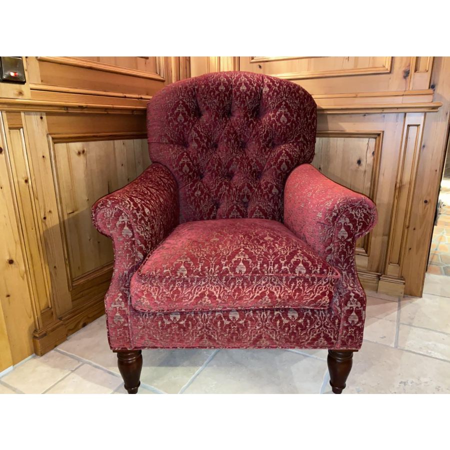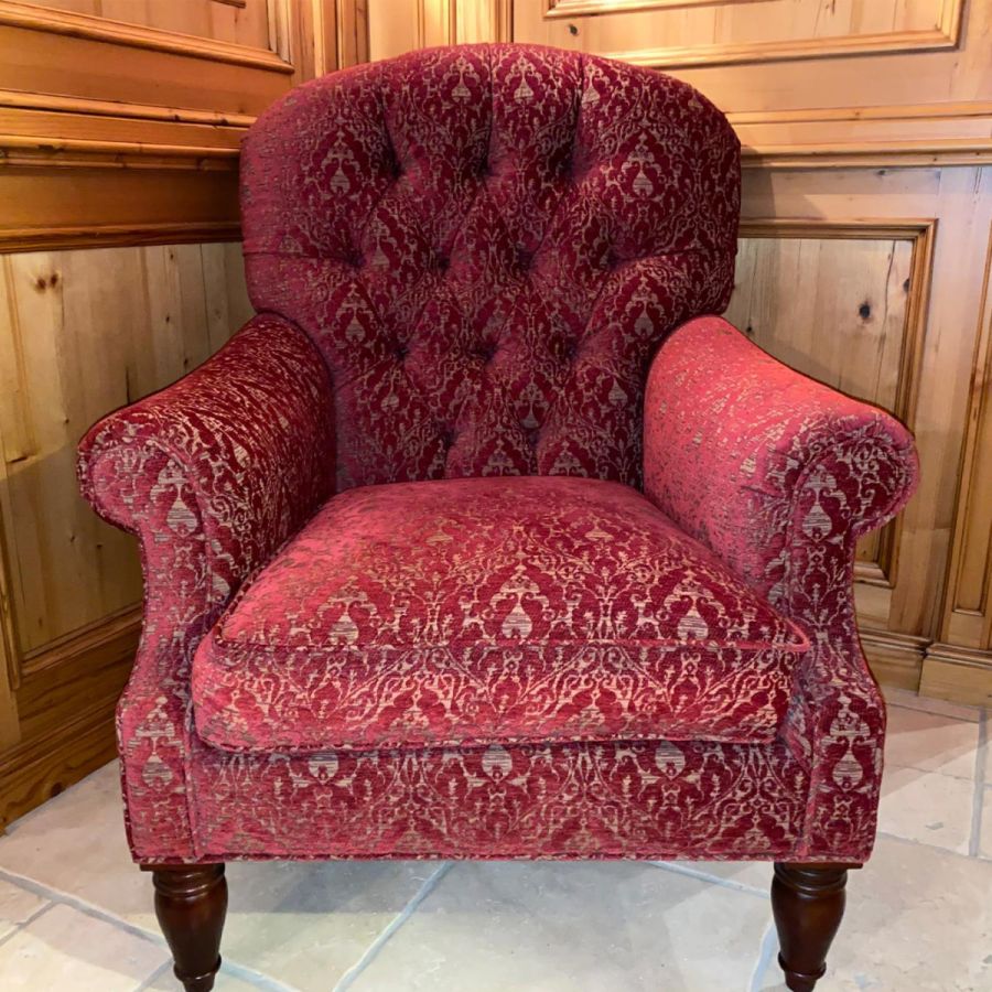 Upscale Upholstery: Deep-button tufted back, soft seat cushion, and gently tailored arms offer a refined yet inviting presence