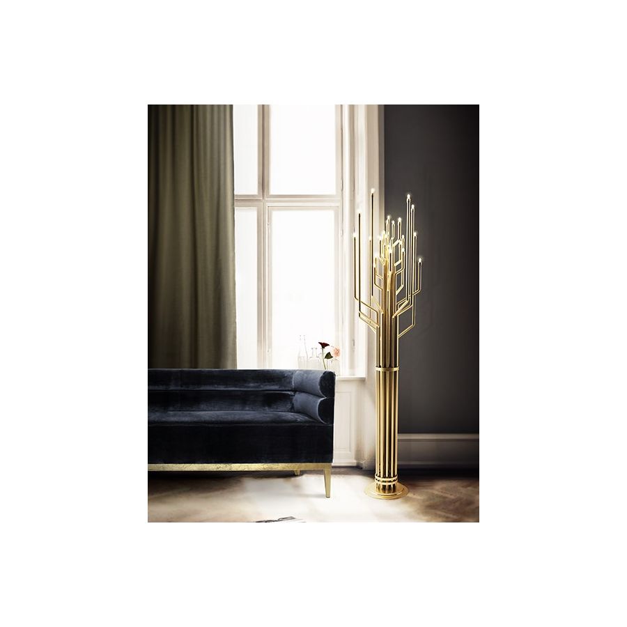 Inspired in Janis Joplin’s music “Best of The Best Gold”, Janis floor lamp recovers the golden jazz spirit of the 60’s. Covered by a golden bath, this entrance floor lamp was designed to make a powerful statement with its mid-century modern design. With almost 67 inches, Janis is 100% handmade in brass, boasting a high quality craftsmanship. This tall standing lamp fits beautifully in a modern entryway or in a classic living room corner, since it is an excellent match for both contemporary and classic decors.