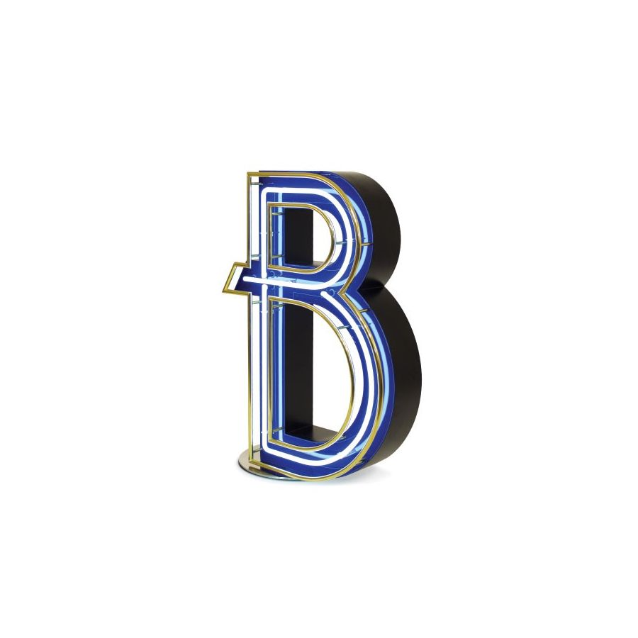 With its soft round deco shape, the graphic letter B, with a mixture of gold, black and blue fills any modern interior with luxury and elegance like no other. And just when you thought this lamp couldn’t surprise you more: you can place it outdoor too. Inspired by the icons of the art decor times, B stands for beauty, bohemian, brightness. An infusion of grace with a neon light shining on your design project. With 100 x 71 x 20 cm and 39.4 x 28 x 7.9 in this marquee letter can be colour customized, it's available in a mini version and comes with white Neon 45W bulbs.With its soft round deco shape, the graphic letter B, with a mixture of gold, black and blue fills any modern interior with luxury and elegance like no other. And just when you thought this lamp couldn’t surprise you more: you can place it outdoor too. Inspired by the icons of the art decor times, B stands for beauty, bohemian, brightness. An infusion of grace with a neon light shining on your design project. With 100 x 71 x 20 cm and 39.4 x 28 x 7.9 in this marquee letter can be colour customized, it's available in a mini version for your wall or floor and comes with white Neon 45W bulbs.