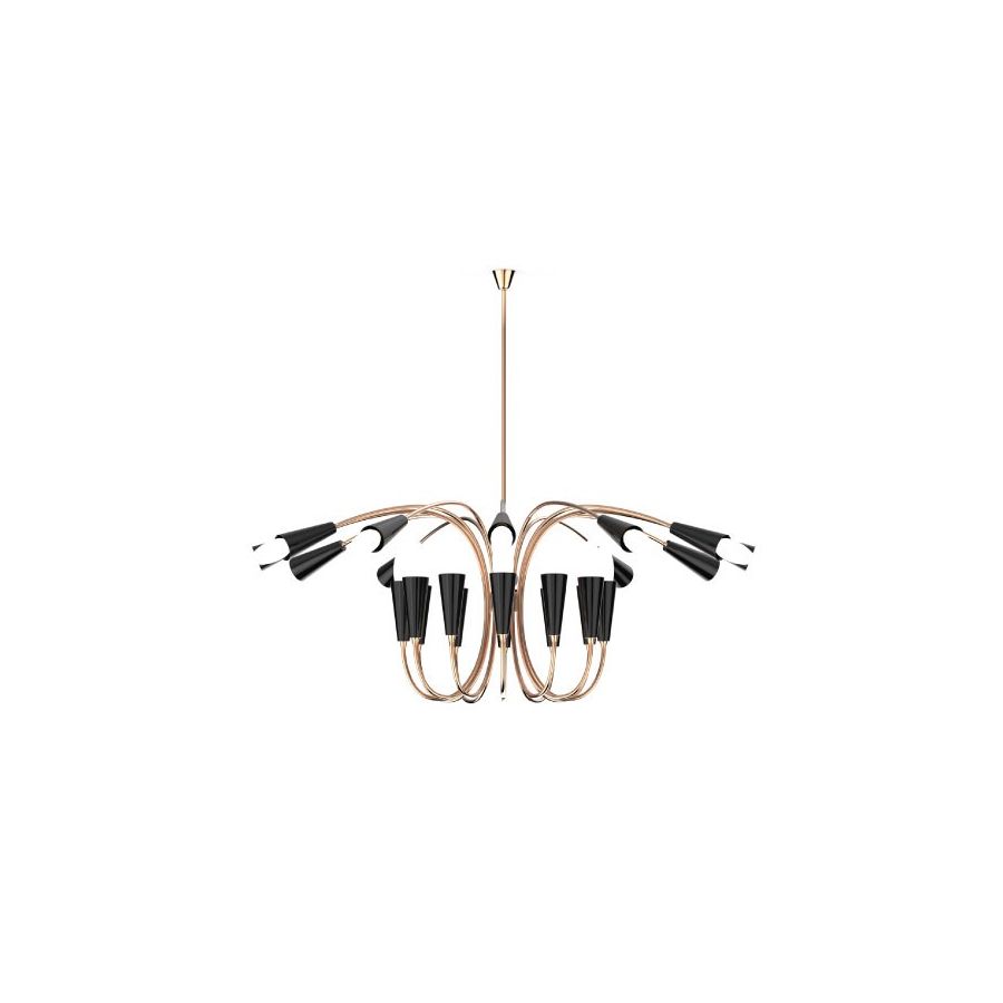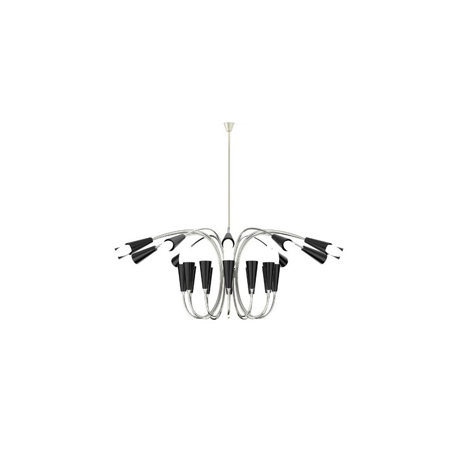 Drawing inspiration from one of the most acclaimed jazz singers of all time, DelightFULL’s designers created Aretha modern chandelier. It is a contemporary reinterpretation of mid-century lighting design classics that were used in the 50s and 60s. The body is 100% handmade in brass and the several bulb holders are made of aluminum. Nickel-plated is the standard finish for the body, while glossy white is used for the sockets.