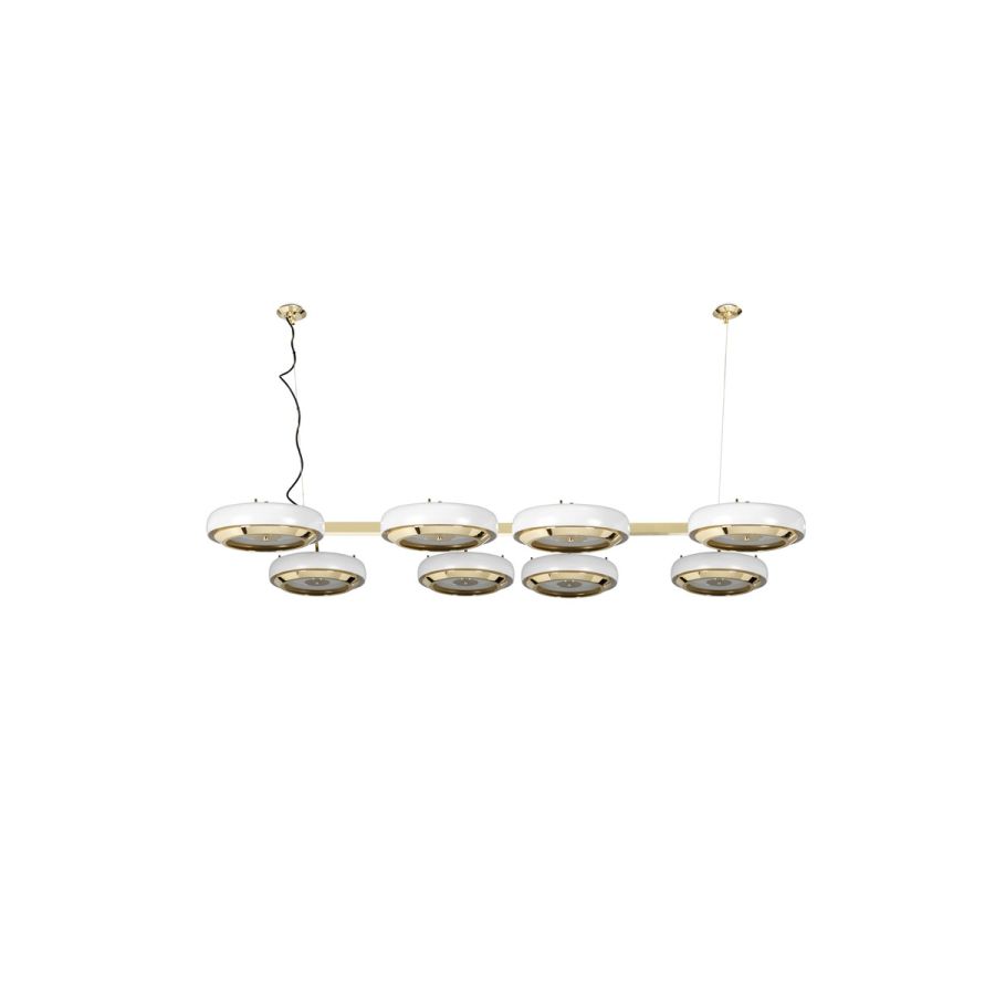 Carter suspension lamp is the singular piece that your modern home decor was missing. Designed with the great discoveries of space in mind, Carter modern suspension lamp has all the unique xture elements to be a memorable modern lighting design. Its unique shape is recognizable anywhere and its attention to detail is a one of a kind making this the perfect bespoke design. Handmade in polished brass and matte white, the soft casting light of the 6 arms of this mid-century modern lighting xture has all the unique details to transform any project and create the perfect mood, casting light whenever you need.