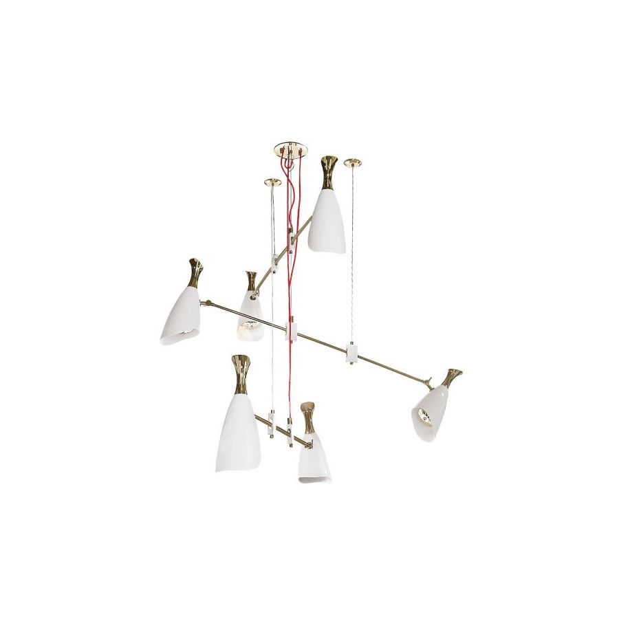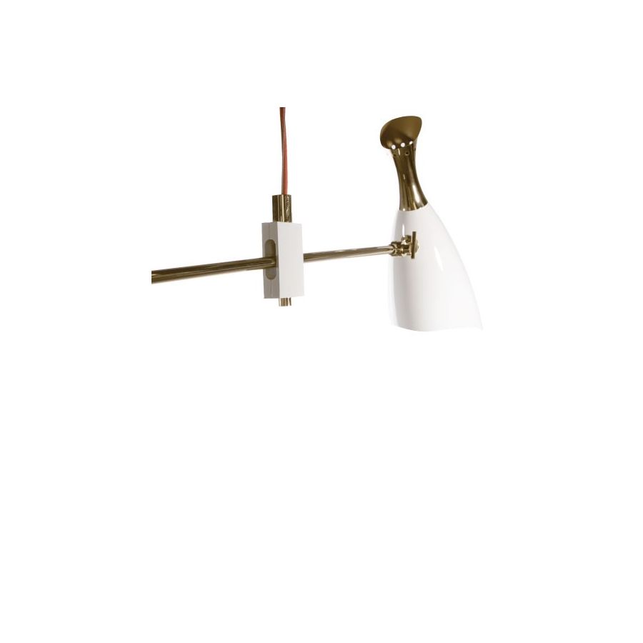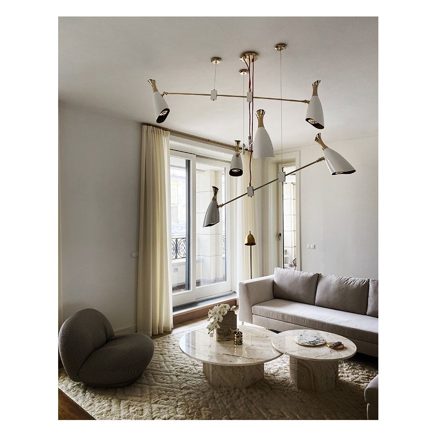 Duke Pendant is a modern pendant lighting design that boasts a heavy nostalgic 70s groove vibe. Inspired by the simplicity of the 1970s, DelightFULL’s designers were able to create an iconic modern ceiling light that suits the most demanding setting. Produced in Portugal, it is handmade in brass and aluminum. The body, made of brass, has both a matte black and a gold-plated finish, while the shades are lacquered a glossy black on the outside. The inside is matte white, but it can also have a gold powder paint finish. It is a stunning bedroom ceiling light, but this large ceiling light can also be considered for other settings, such as a mid-century modern living room.